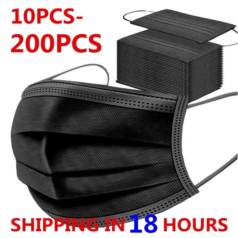 10-500 шт. одноразовые маски для лица, черная противопылевая маска ...