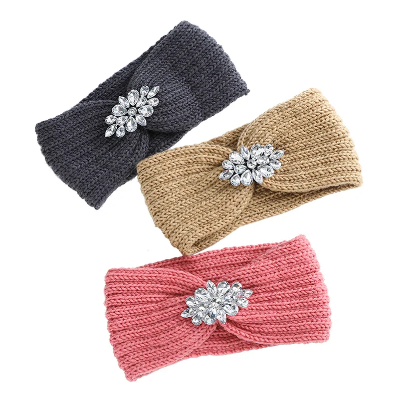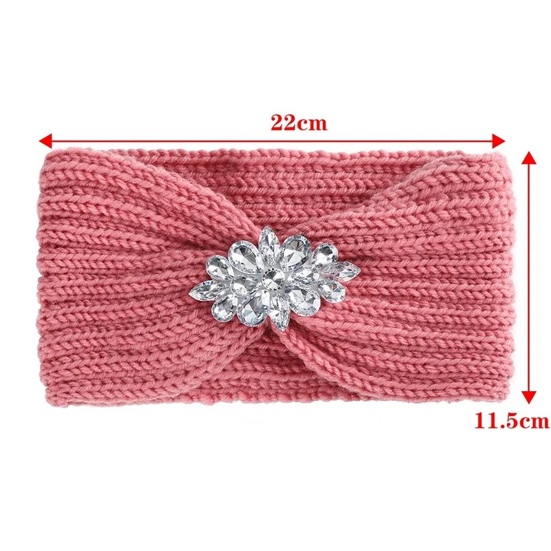 Женские Стразы трикотажные повязки для женщин зима теплая крючком головка широкий Топ без бретелей, резинка для волос, обтянутая тканью; Лента для волос аксессуары для волос резинки для волос