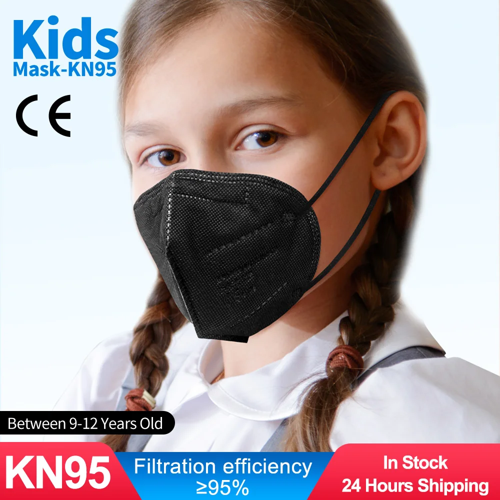 Черная детская маска ffp2, детская маска для лица KN95 для детей ffp2 маски-капельки многоразовые ffp2maks negra, детская маска для детей