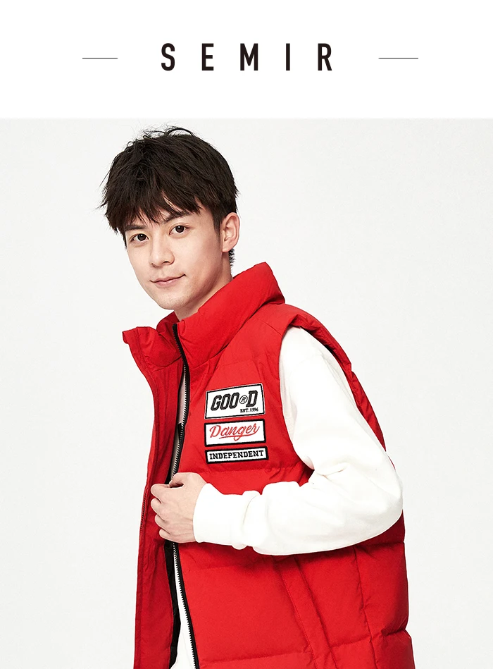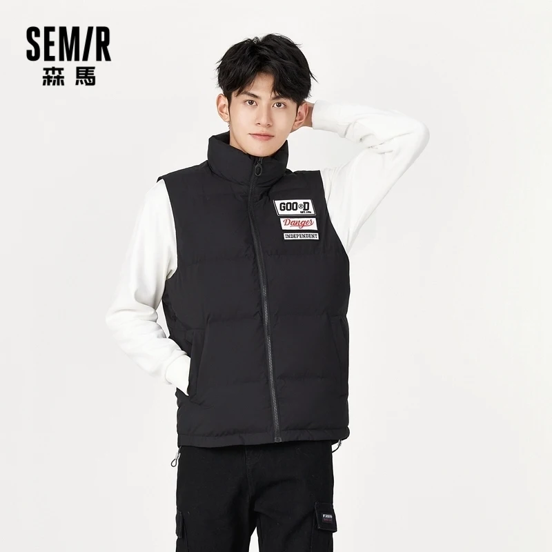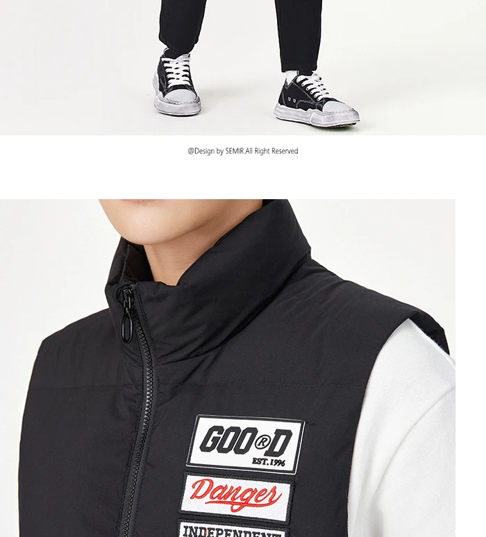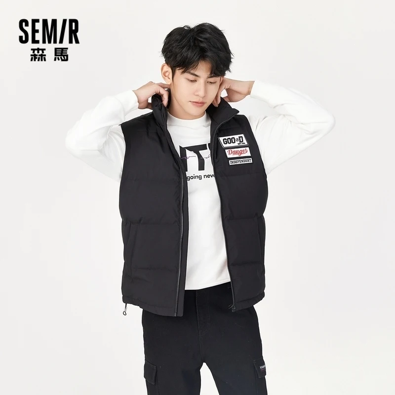 Жилет SEMIR мужской пуховой, трендовый контрастный короткий жилет с воротником-стойкой, осень 2021