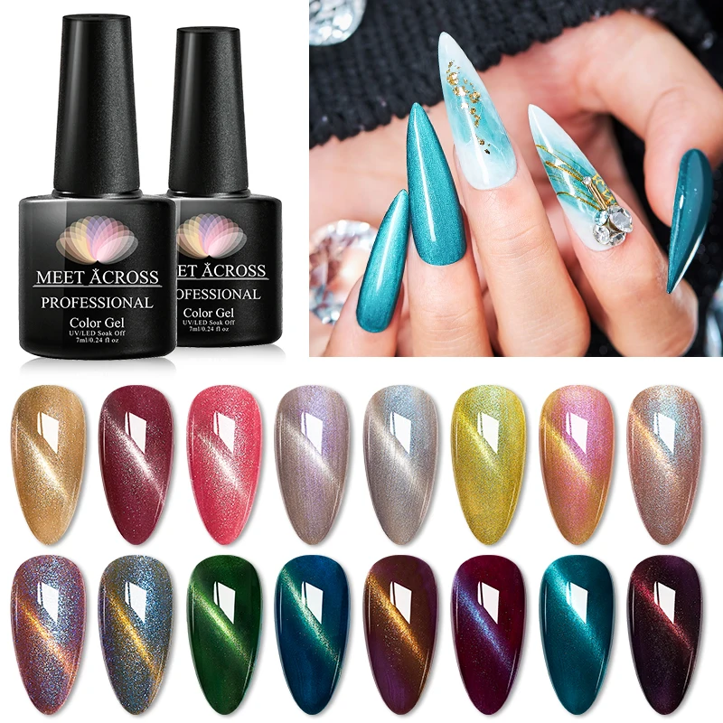 MEET ACROSS 4321 шт. Магнитный Звездный Сияющий 3d гель-Хамелеон кошачий глаз полуперманентный отмачиваемый УФ светодиодный гель для ногтей для маникюра