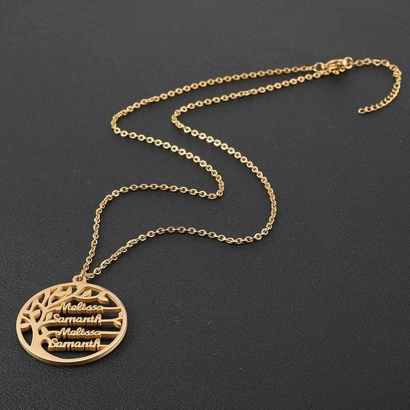 Ожерелье Древо жизни, ожерелье с именем на заказ для женщин, персонализированное колье из нержавеющей стали с буквами, ожерелья, ювелирные изделия, рождественский подарок