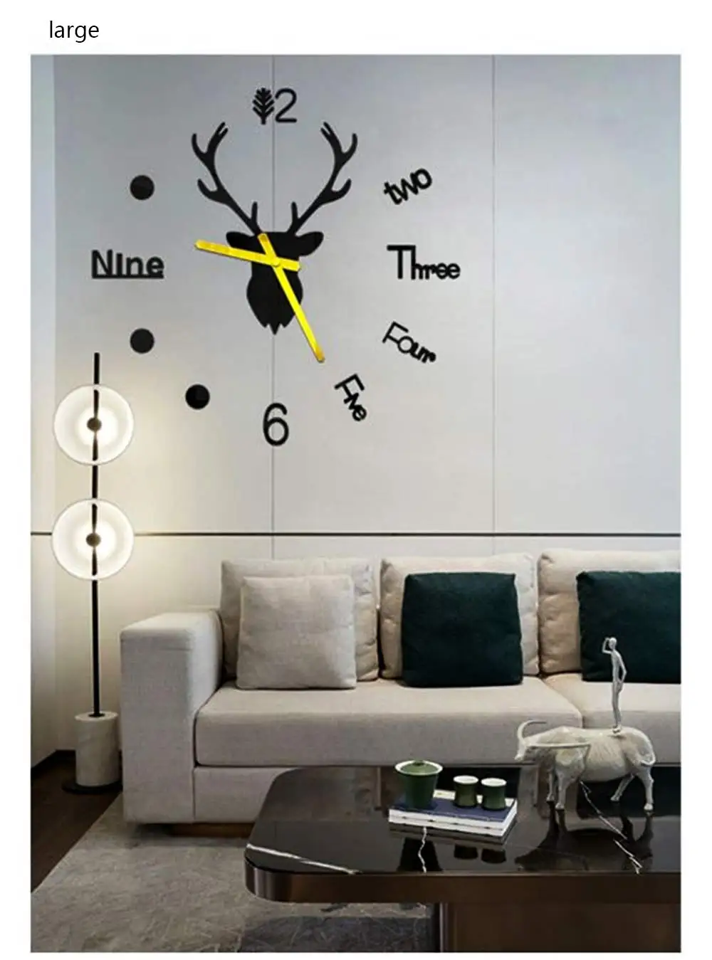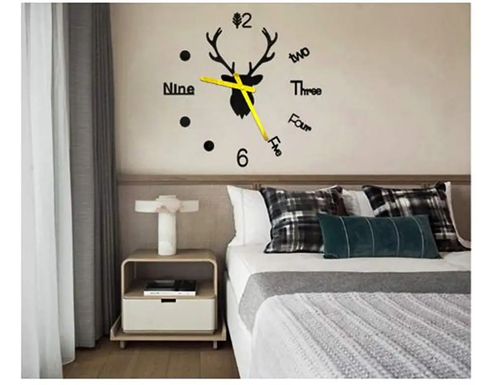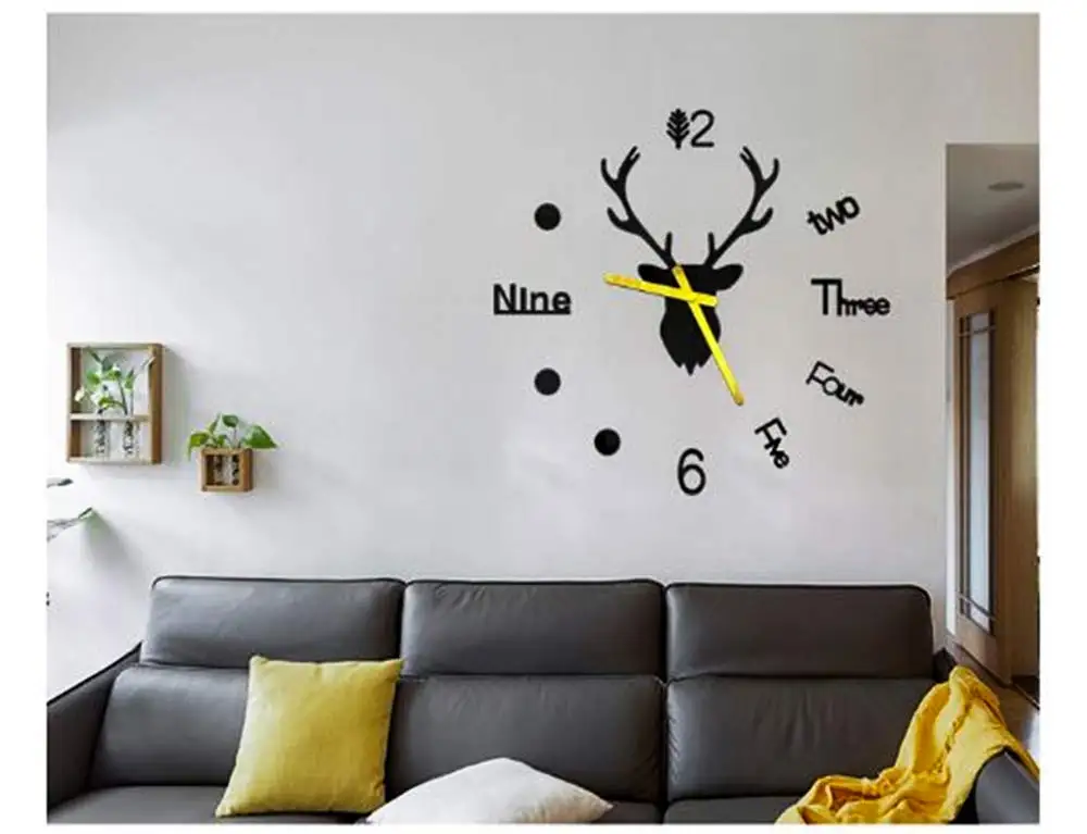 Настенные часы HOOQICT 3D сделай сам, современный дизайн, большие часы с оленем, домашний декор, эстетический декор комнаты, часы на стену с цифрами