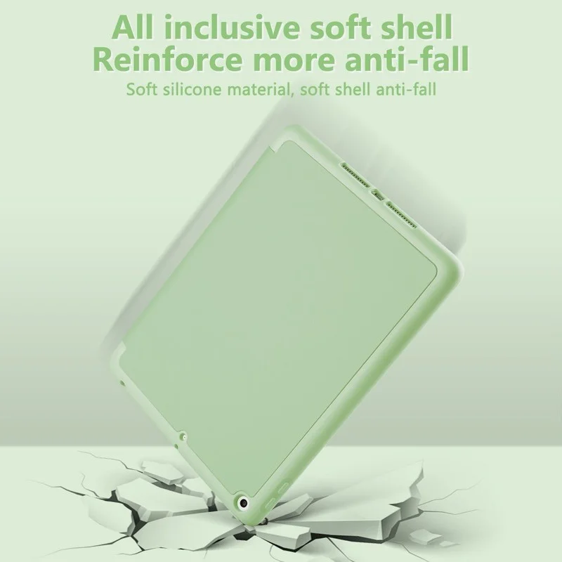 Магнитные Чехлы для планшетов для iPad Pro 12 9 11 Air 4 3 Mini 5 8th 7th 6th Generation, чехол с держателем для карандашей, силиконовый чехол Особенности 1. Прочный материал, профессиональный дизайн-изготовлен из мягкого силикона, обеспечивая полную защиту тела от падений, отпечатков пальцев и царапин. Полный доступ ко всем элементам управления и функциям. Идеальные вырезы для камеры и других портов. 2. Функция автоматического сна/пробуждения, Магнитный смарт-чехол для рук поддерживает функцию пробуждения и сна. Чехол легко открывается и работает для подставки, которая позволяет совершать видеозвонки без рук, читать или смотреть фильмы в любом месте. 3. Стабильная трехслойная стойка, Встроенные магниты, складываются в стабильную подставку. Три сложения передней крышки, чтобы насладиться наиболее удобной печатью и просмотром фильмов. Тип:Чехол для iPad с держателем для карандашей (ручкаНетВ комплекте) Материал:Мягкий силикон
