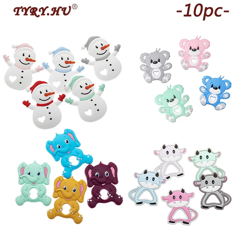 TYRY.HU, 10 шт., силиконовый Прорезыватель для зубов, пищевой силикон, грызунок, снеговик, цепочка для самостоятельной сборки, для детской жевательной игрушки, силиконовые бусины