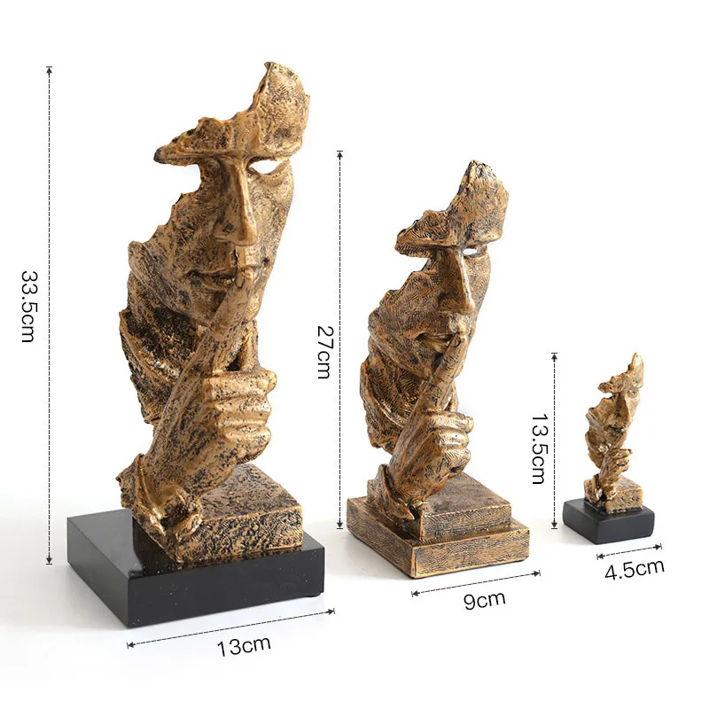 Фигурки из смолы в стиле ретро тишина-золото, оригинальные декорати...