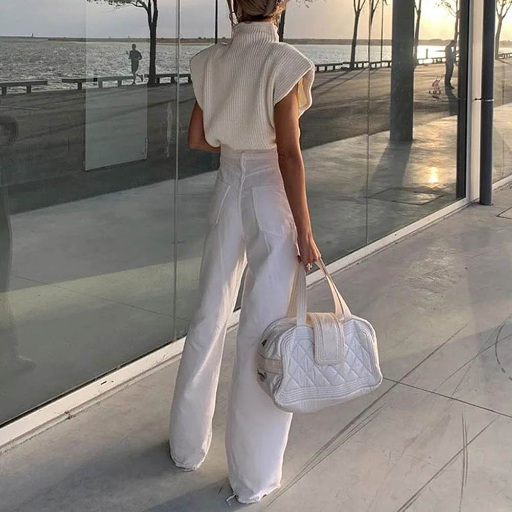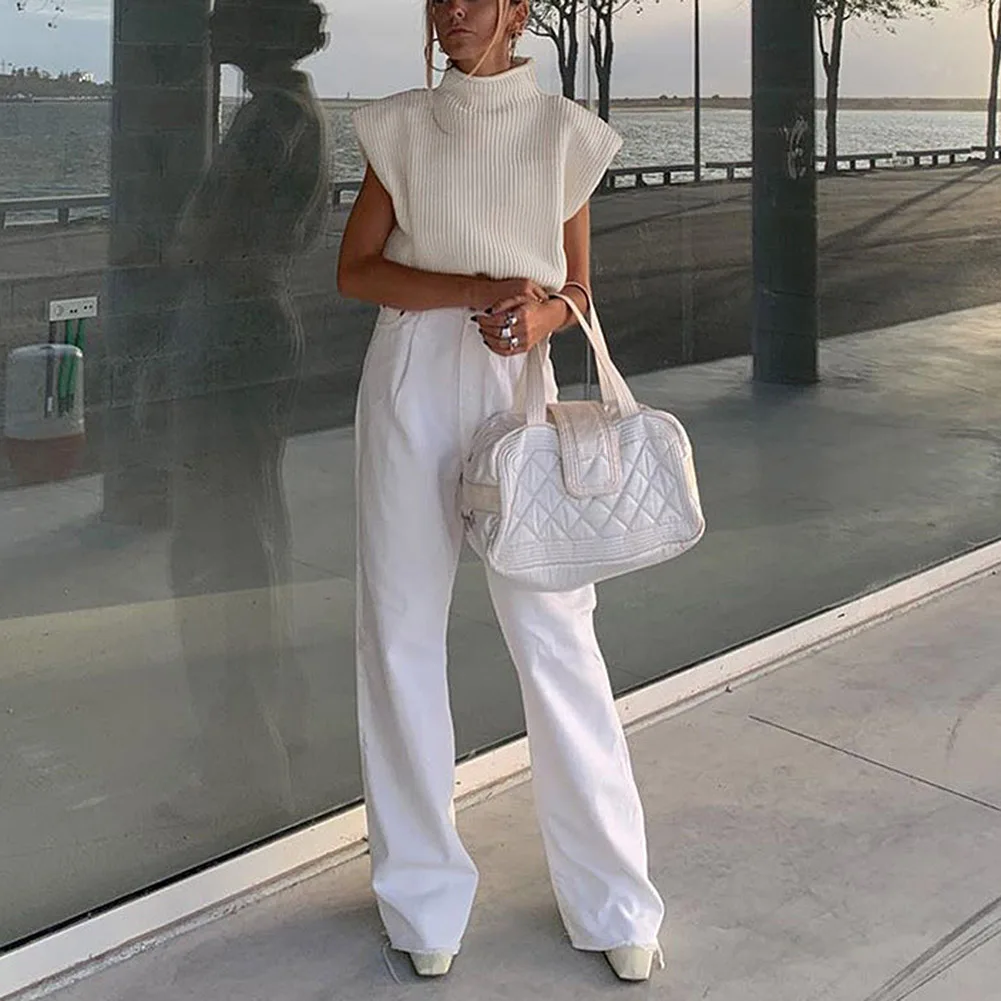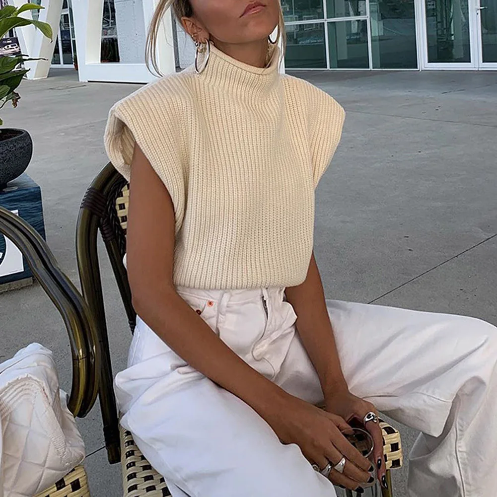 Rollkragen пуловер без рукавов Frauen 2021 Mit Schulter Pads Gestri...
