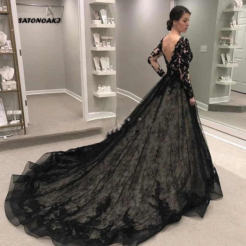 Черные Готические трапециевидные свадебные вечерние платья 2021 с о...