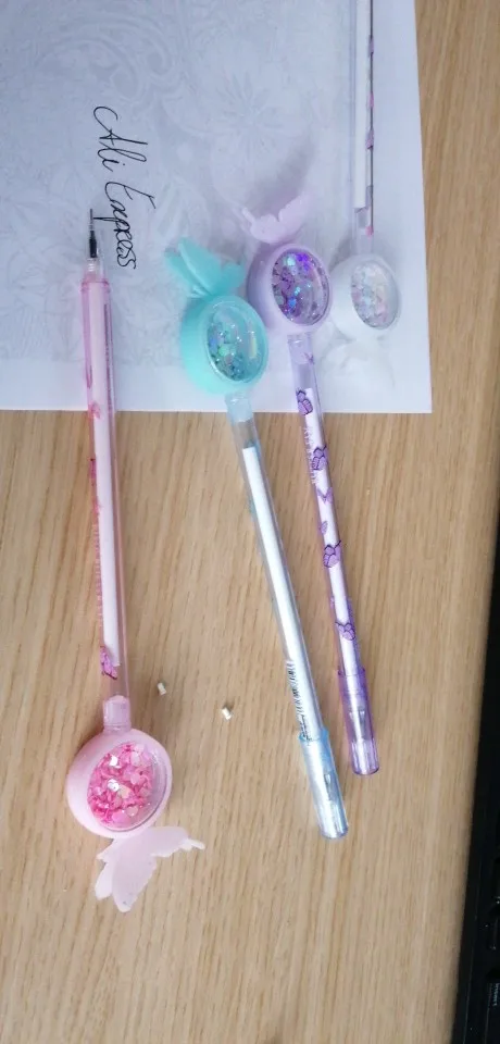 Я не знаю, потому что получил что-то совершенно другое :-) четыре ручки с наконечниками иглы, черные чернила и бабочки на конце. Я использую много иглообразных ручек, поэтому они пригодятся, но я действительно хотел серебряные и золотые. Они пишут очень хорошо. Хороший чернильный поток