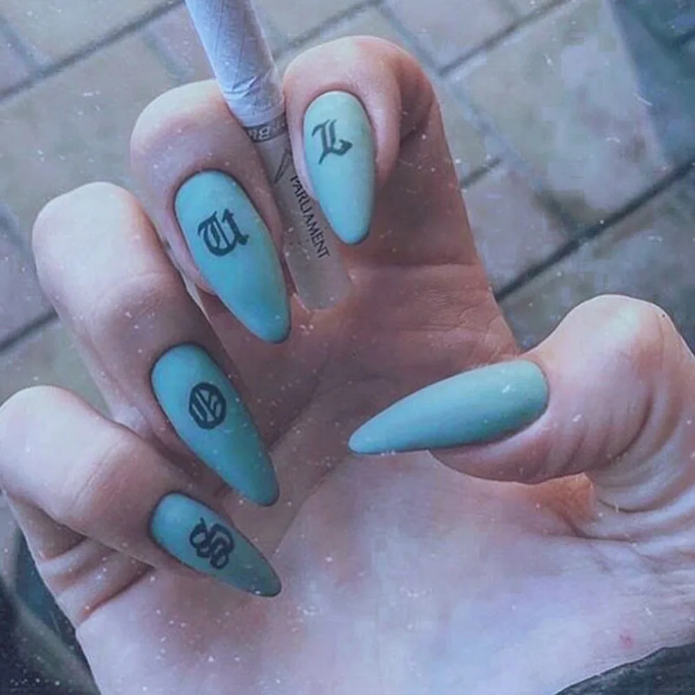 Длинные накладные ногти-стилеты ногтей, 24 шт.компл., в стиле панк, с древними буквами, матовые накладные ногти, искусственные Типсы для маникюра