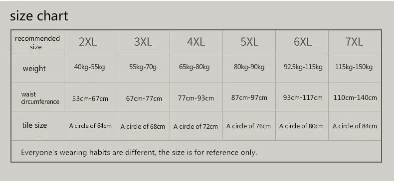 7XL отлично подошли на мой 60-й (120 в талии 130кг) Приятная мягкая ткань.
