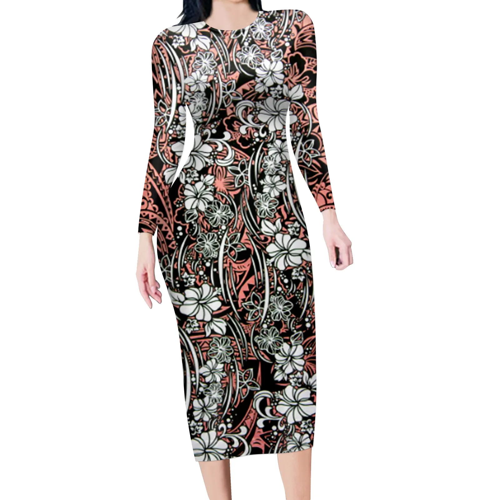 Новинка весны, соблазнительные Длинные платья HYCOOL с Полинезийским принтом и круглым вырезом, повседневные женские платья с длинным рукавом, облегающие элегантные вечерние платья
