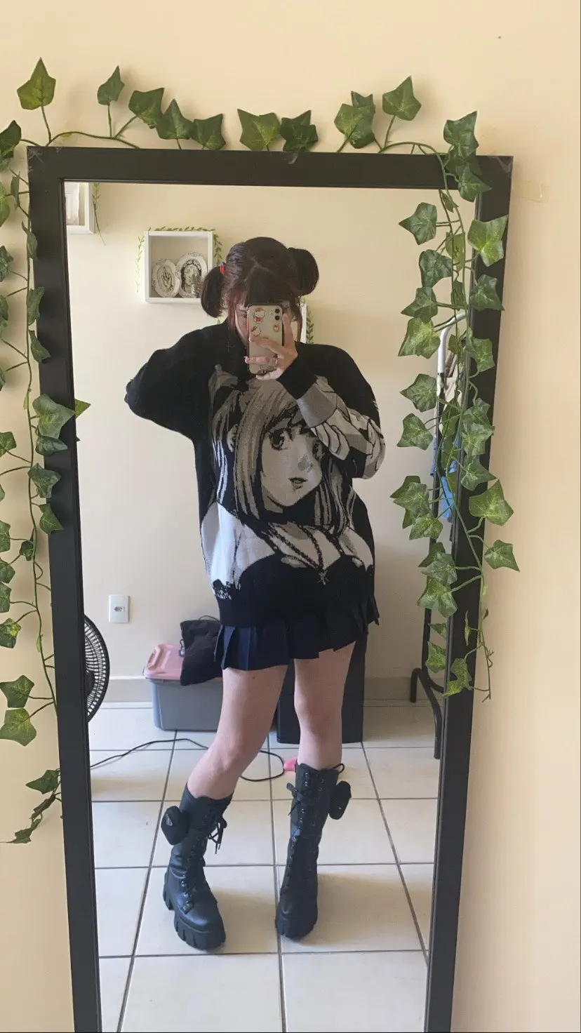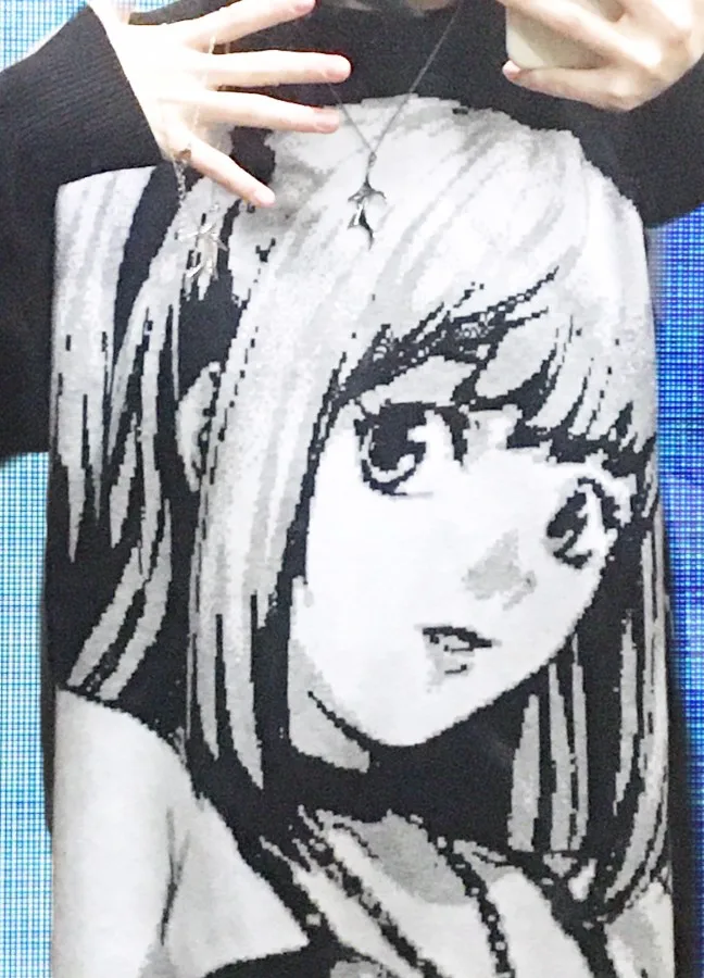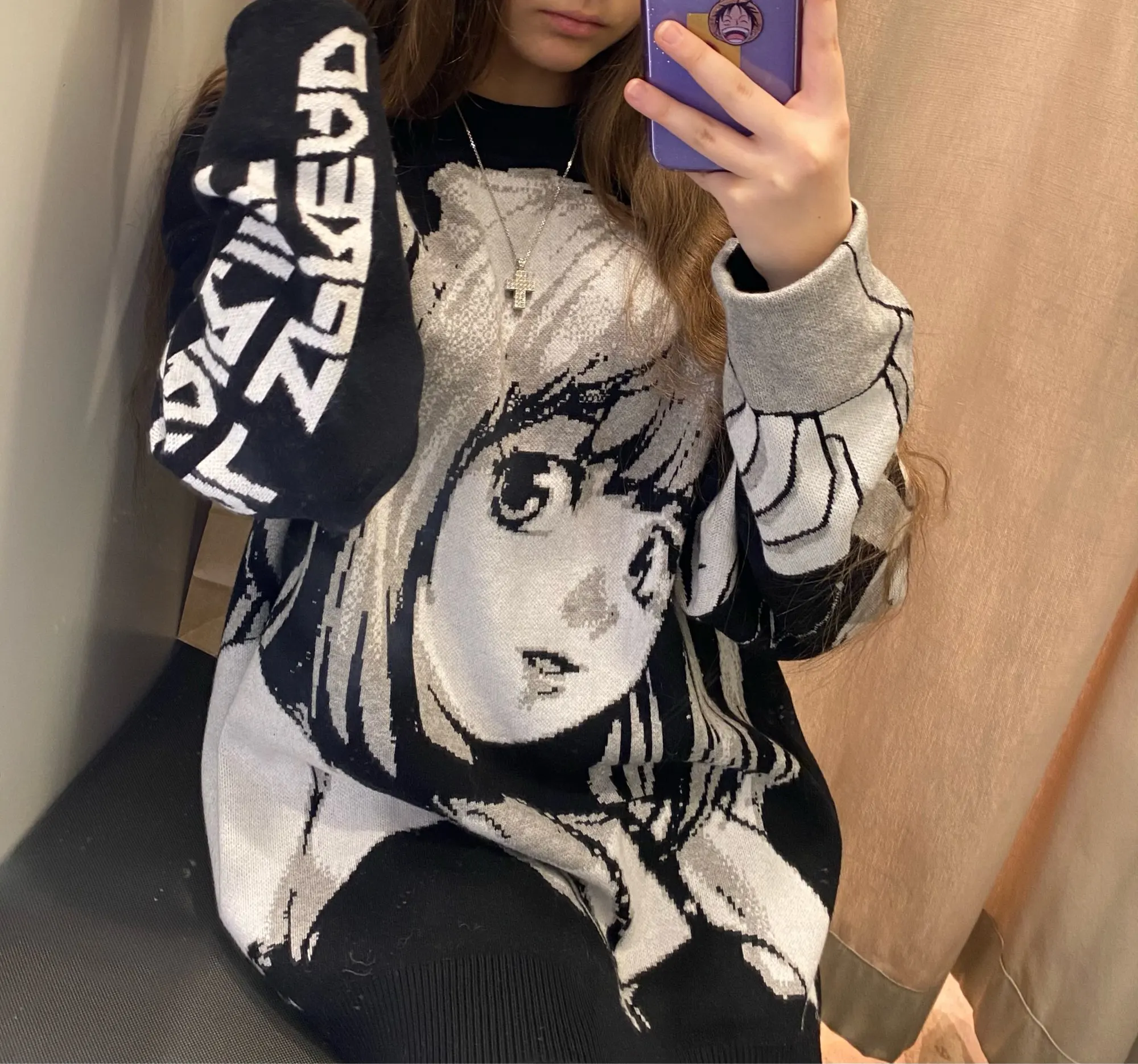 Вязаный свитер в стиле аниме для девочек, мужской уличный свободный шерстяной джемпер в стиле хип-хоп, винтажный пуловер в японском стиле Харадзюку, готические весенние свитера