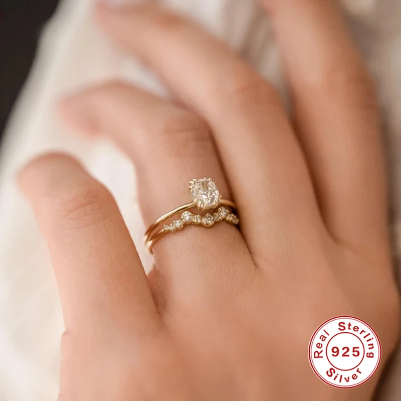 Женские обручальные кольца ROXI, обручальные кольца из стерлингового серебра 925 пробы с геометрическими камнями