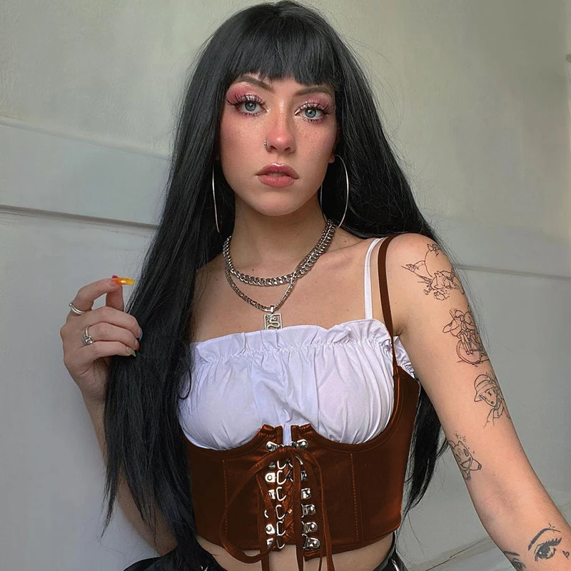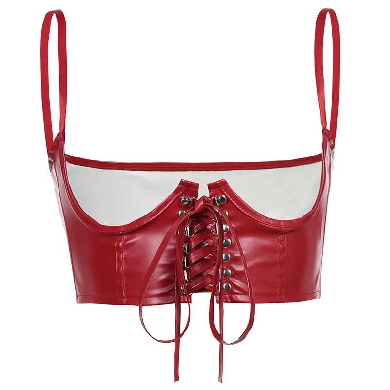 Уличная одежда Darlingaga, Готический Темный укороченный топ из искусственной кожи, Женский Топ на шнуровке с крючком в стиле панк, топ-корсет, топы для ношения