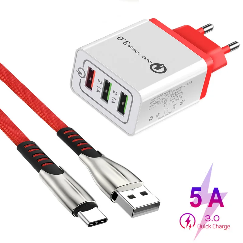 Быстрая зарядка 3,0 Быстрая зарядка USB настенное зарядное устройство Портативный мобильный адаптер для Xiaomi Mi A2 A3 9T 8 9 10 Lite Redmi 9A 9C 5A Кабель с разъемом usb-c