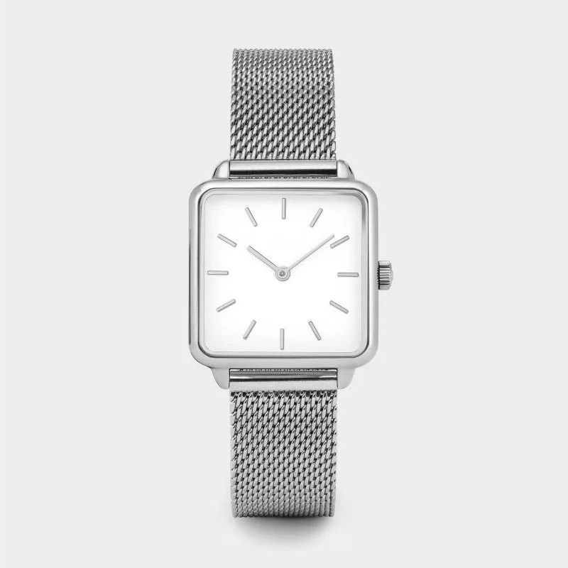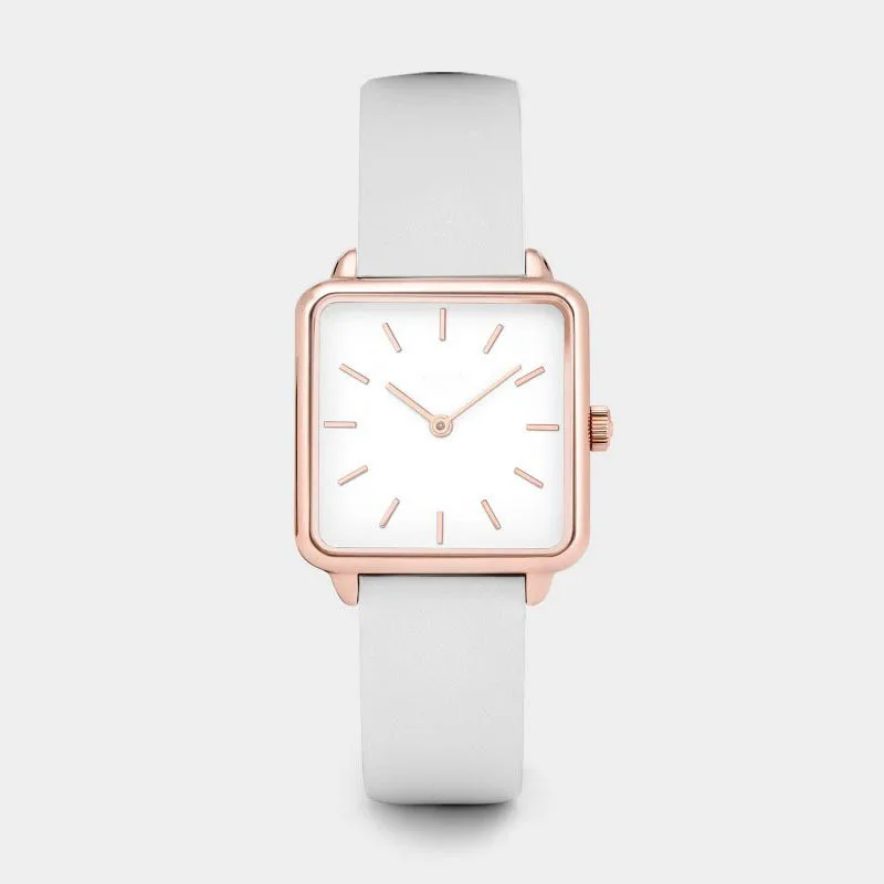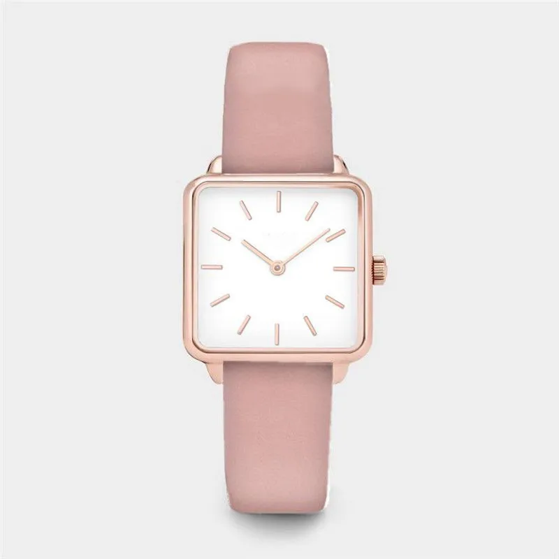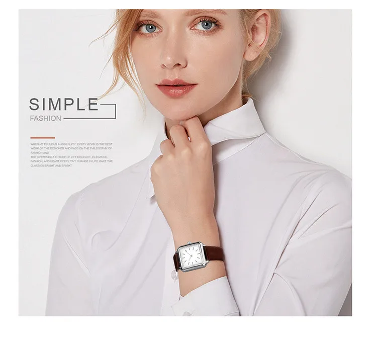 Простые Женские кварцевые наручные часы с квадратным циферблатом и кожаным ремешком из нержавеющей стали