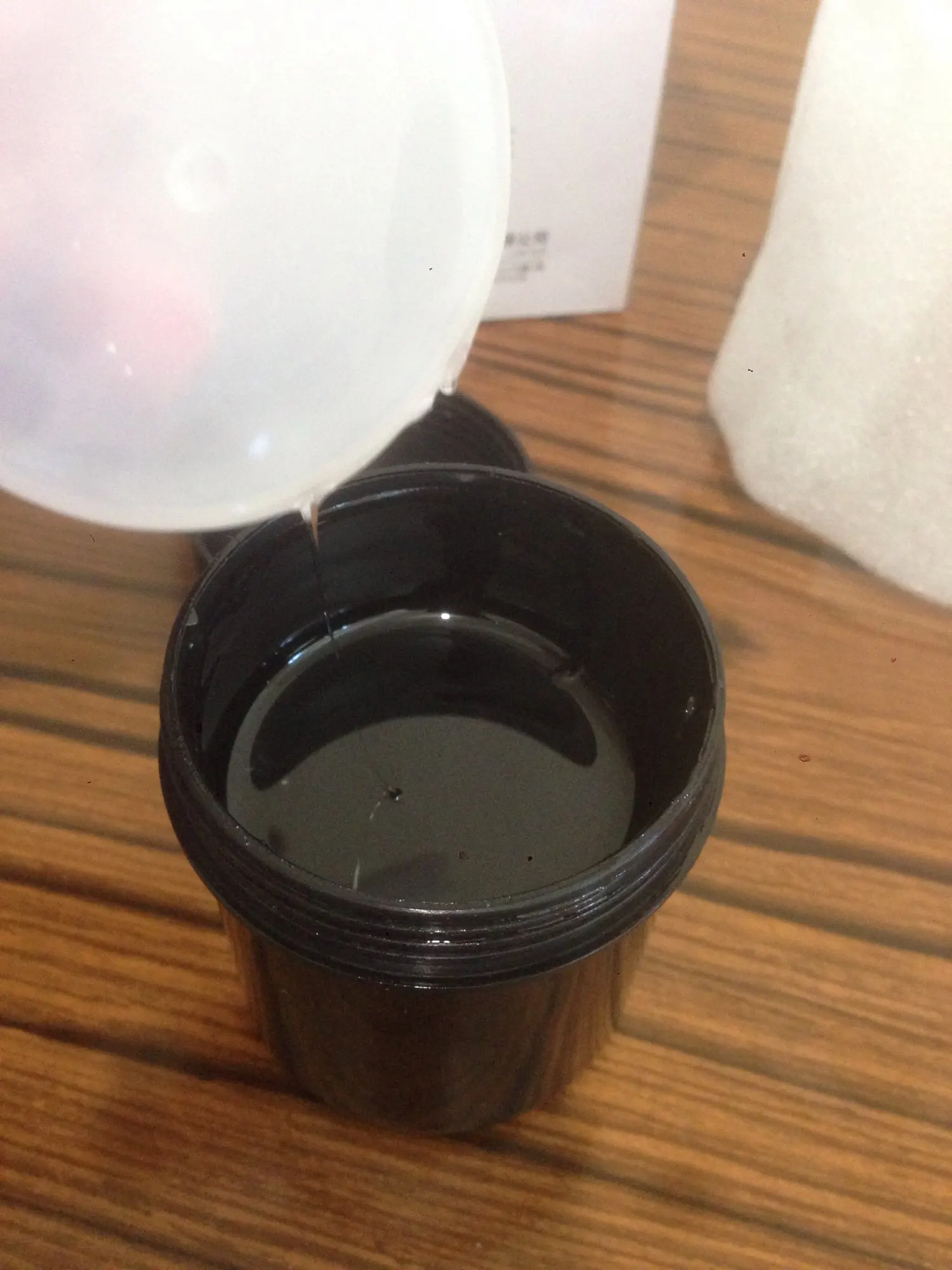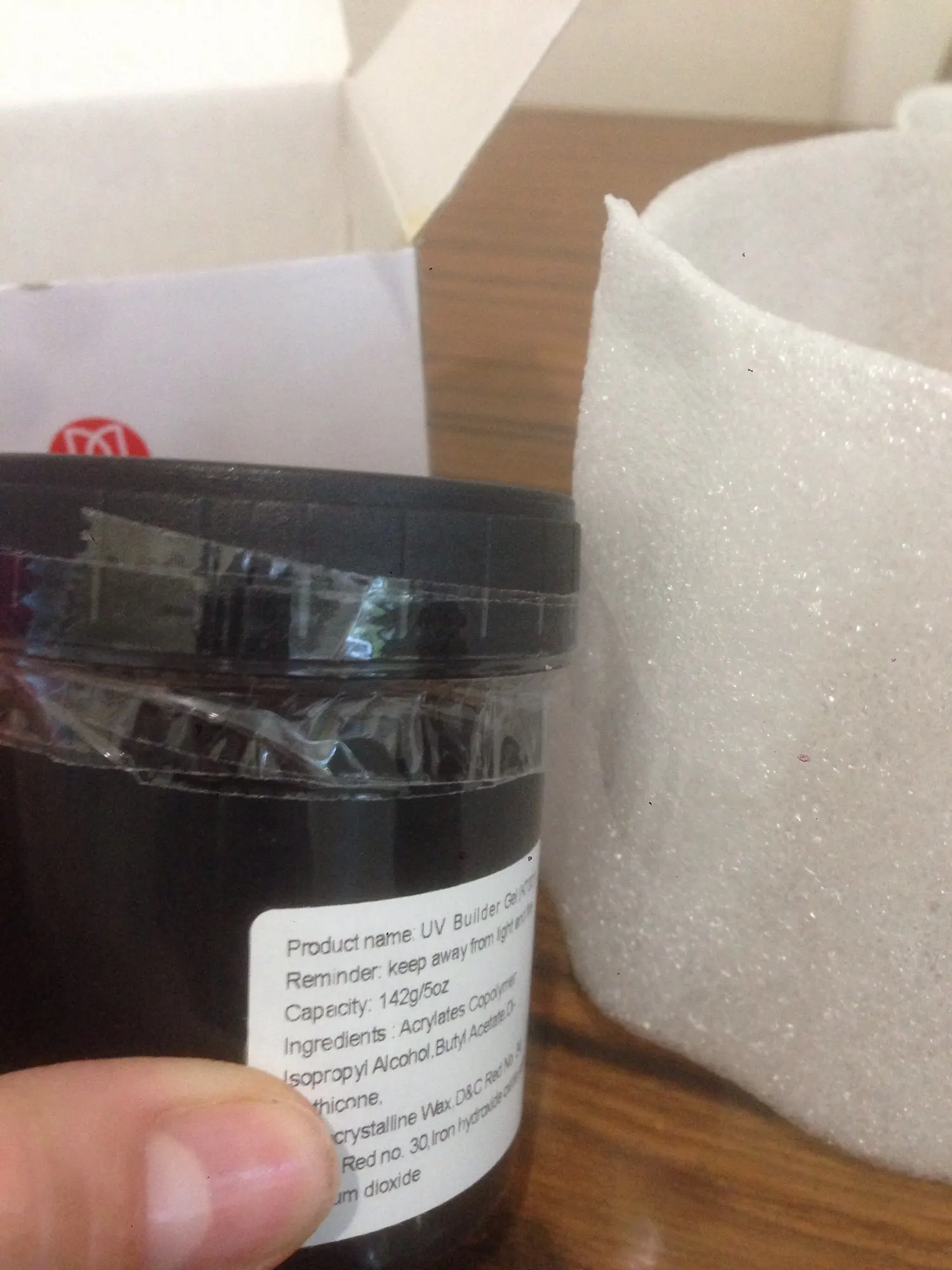 Крепкий и самовыравниваюшийся, не очень густой, работать с ним лучше побыстрей, иначе заливает кутикулу. Очень прочный и хорош в оппиле. цвет как на фото, молочный, полупрозрачный. Шел долго. банка большая, наполнена почти до верха. продавец хорошо закрутил скотчем, чтоб не пролилось.