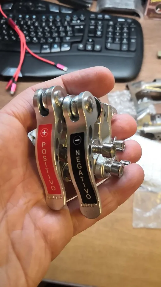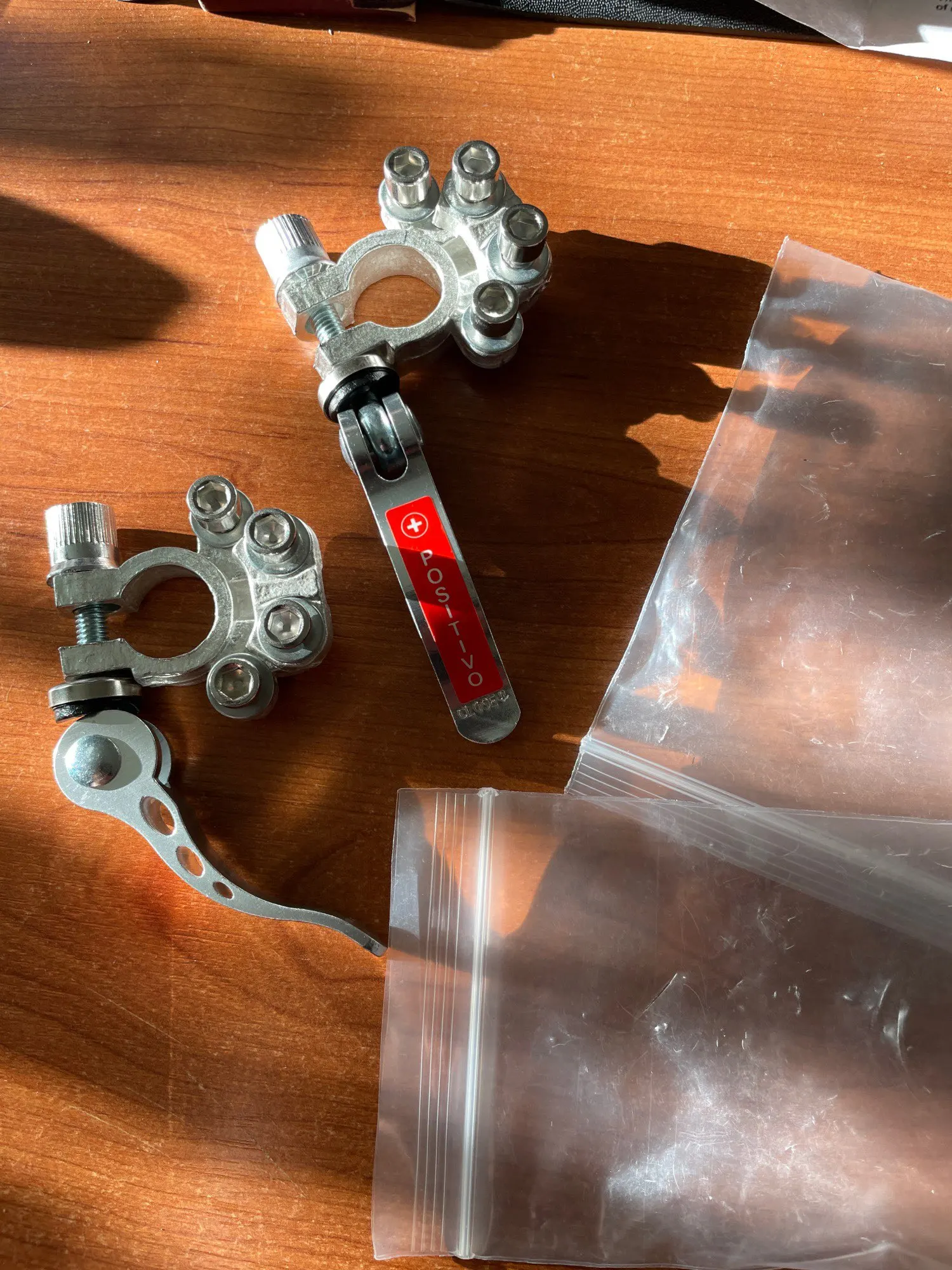 По цене 4,5$ стоит того. Но с учетом доставки получается 10$ и тут уже можно придраться. Опишу подробнее: 1. Клеммы не магнитятся. 2. болтики М6 магнитятся очень плохо. 3. гайка зажима не магнитится вовсе. 4. подгонка зажима провода кривая - посмотрим как обржмётся кабель. 5. клеммы одинаковые - первоначальный диаметр 18мм 6. болтики М6, можно было бы М8 изготовить. В целом доволен, но во второй раз купил бы просто хорошие клеммы и к ним зажим эксцентрик.