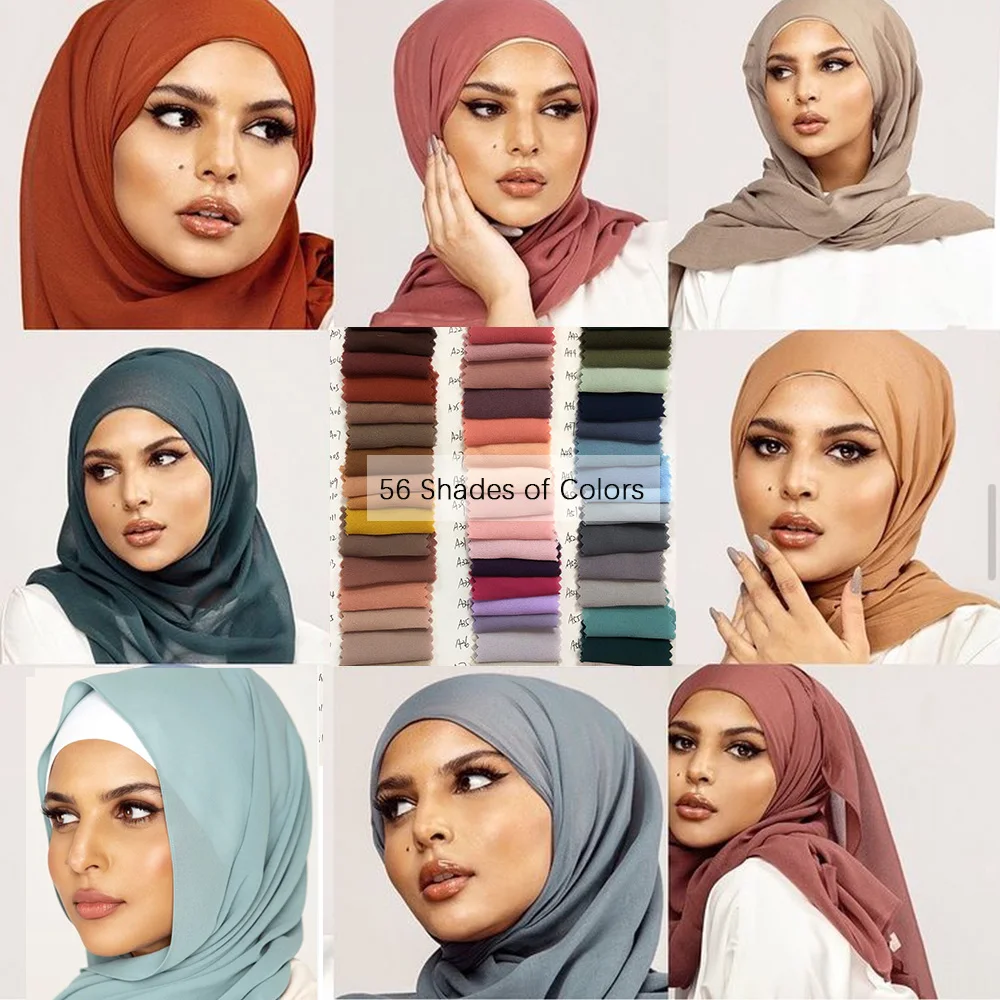 Мусульманский шифоновый хиджаб для женщин, 70*180 см, однотонный хиджаб, шифоновые головные повязки, женские хиджабы, шарфы, женский платок, женская мусульманская вуаль