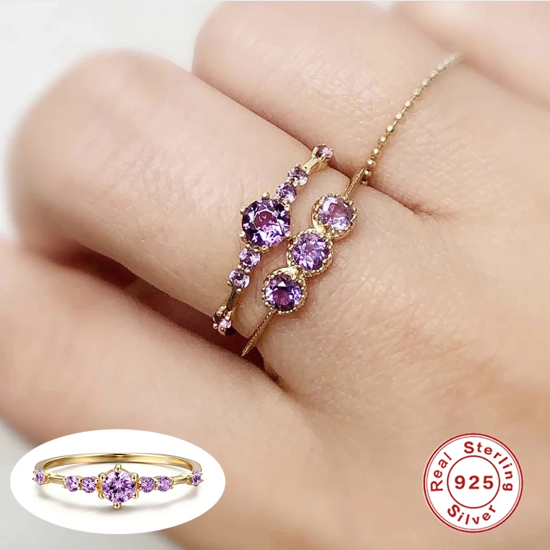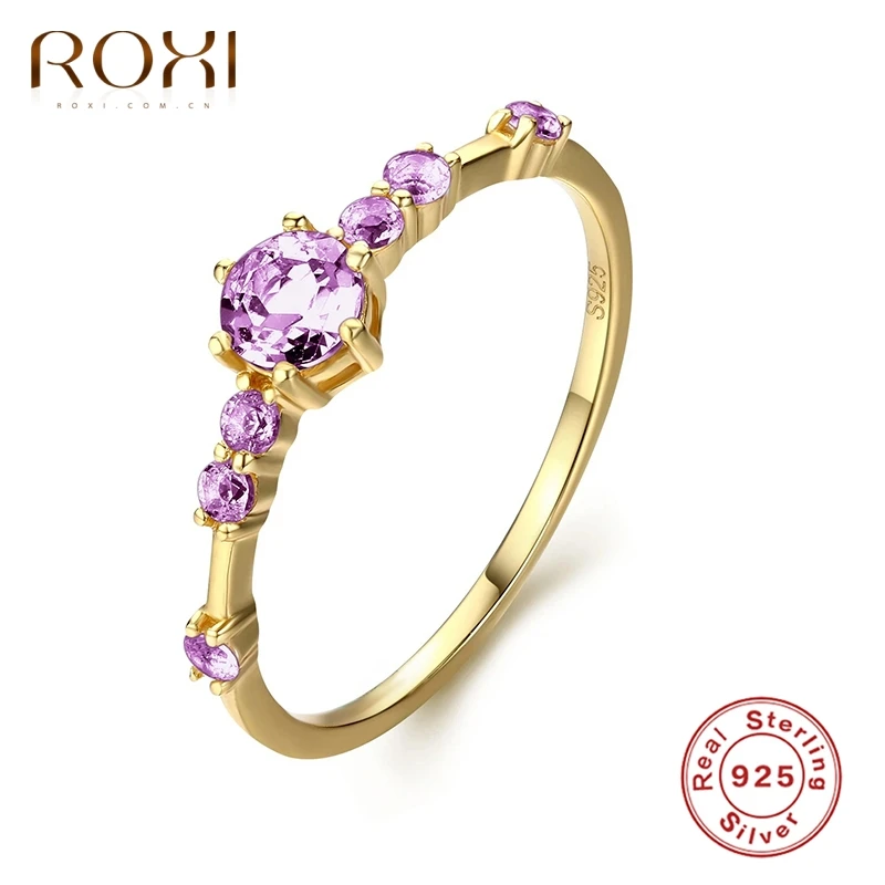 Женское Обручальное Кольцо ROXI, обручальное кольцо с круглым фиолетовым кольца с драгоценными камнями из стерлингового серебра 925 пробы