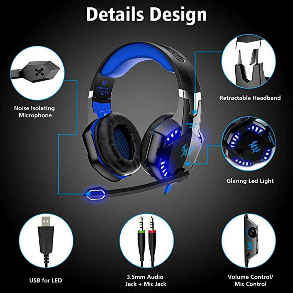Игровая гарнитура KOTION EACH G2000 3,5 мм, наушники с шумоподавлением для ПК, ноутбука, безс аудиокабелем адаптера