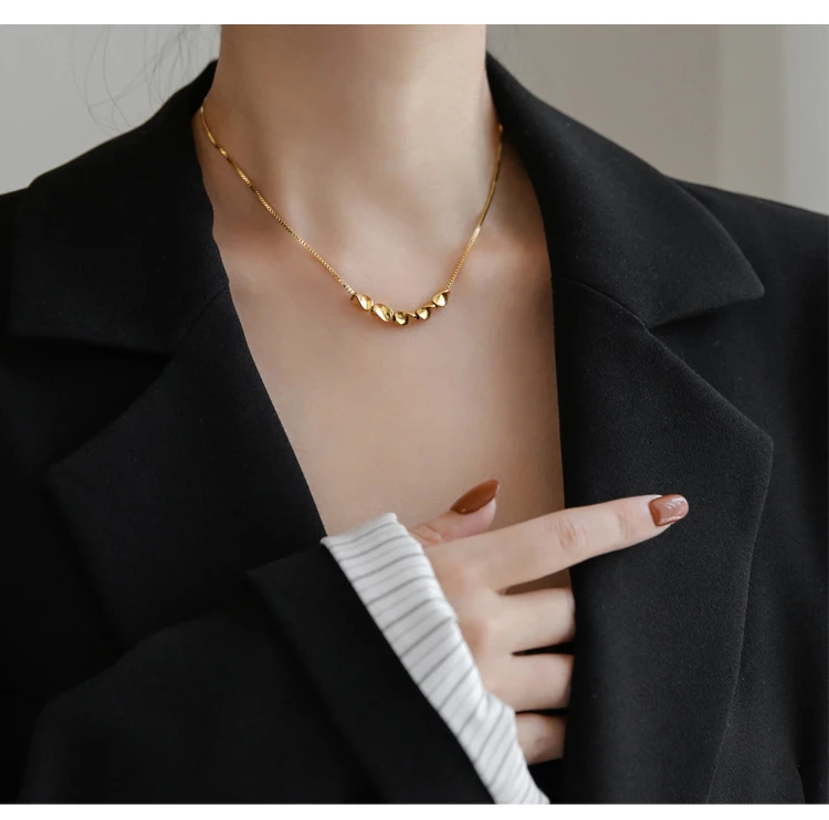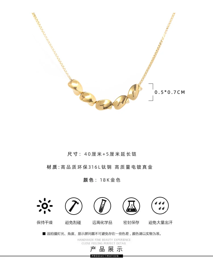 Ожерелье YUN RUO женское из титановой стали, с позолотой 18 карат, с пятью золотыми бусинами, ювелирные изделия, 316 л, аксессуар не меняет цвет