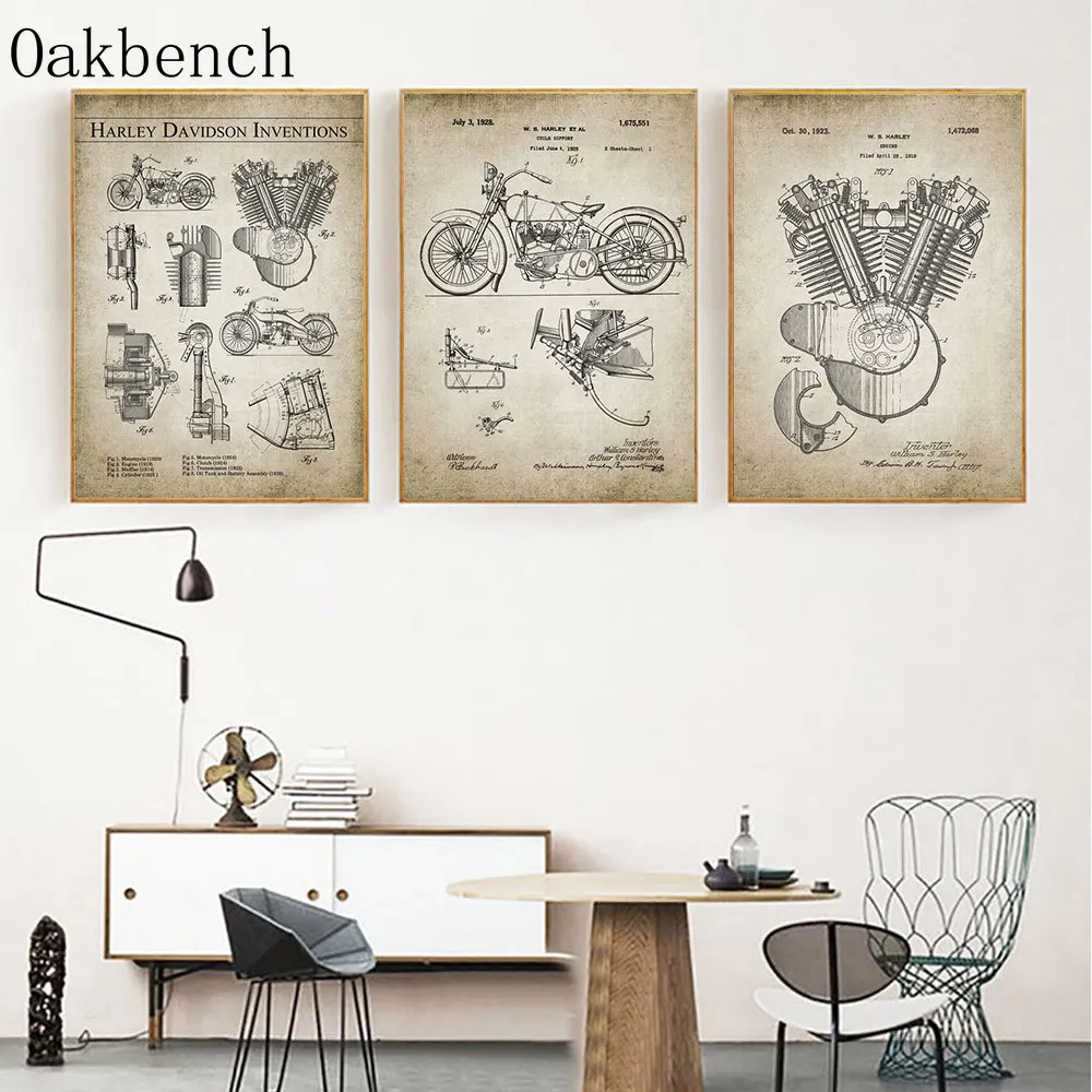 Патентованная Картина на холсте мотоциклетные задние плакаты с механическим двигателем художественные принты настенные картины для декора гостиной
