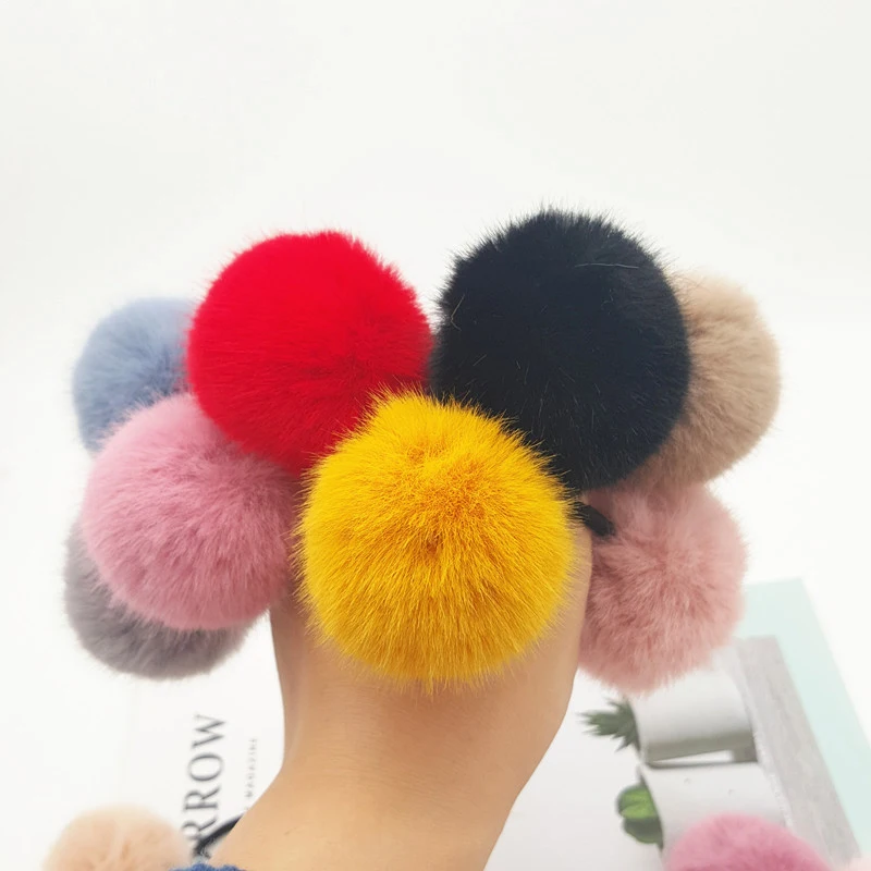 Резинка для волос с имитацией кроличьего меха и помпоном, мягкие те...