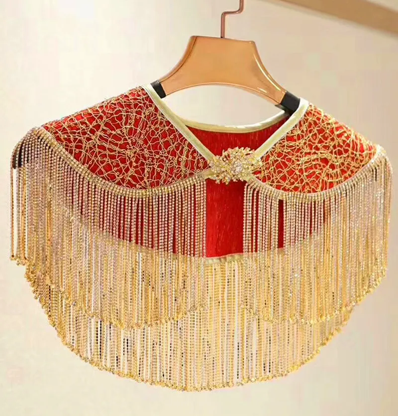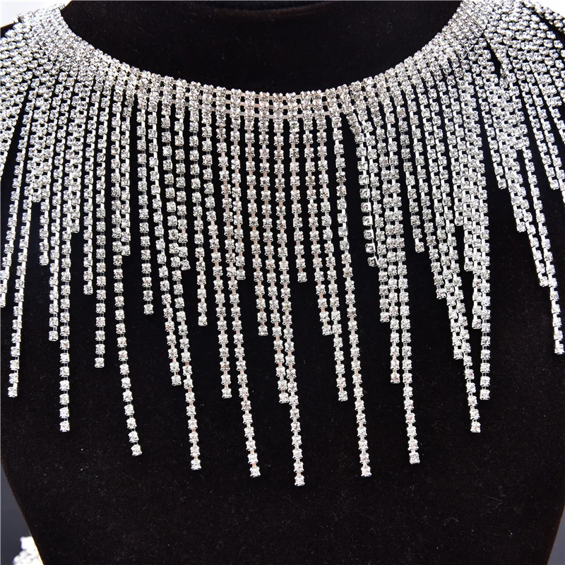 Технические характеристики: Однорядная, кисточками и бриллиантами на цепи: 11,5 см в ширину, трёхрядная, кисточками и бриллиантами на цепи: 12 см в ширину, размер больше стандартных размеров-это длиной 90 см.