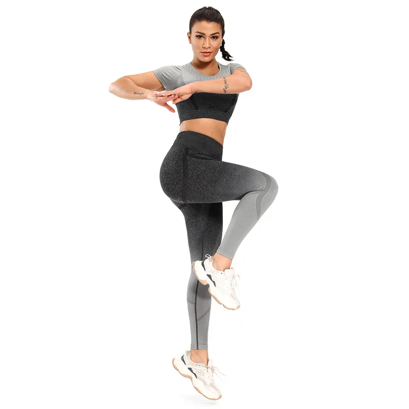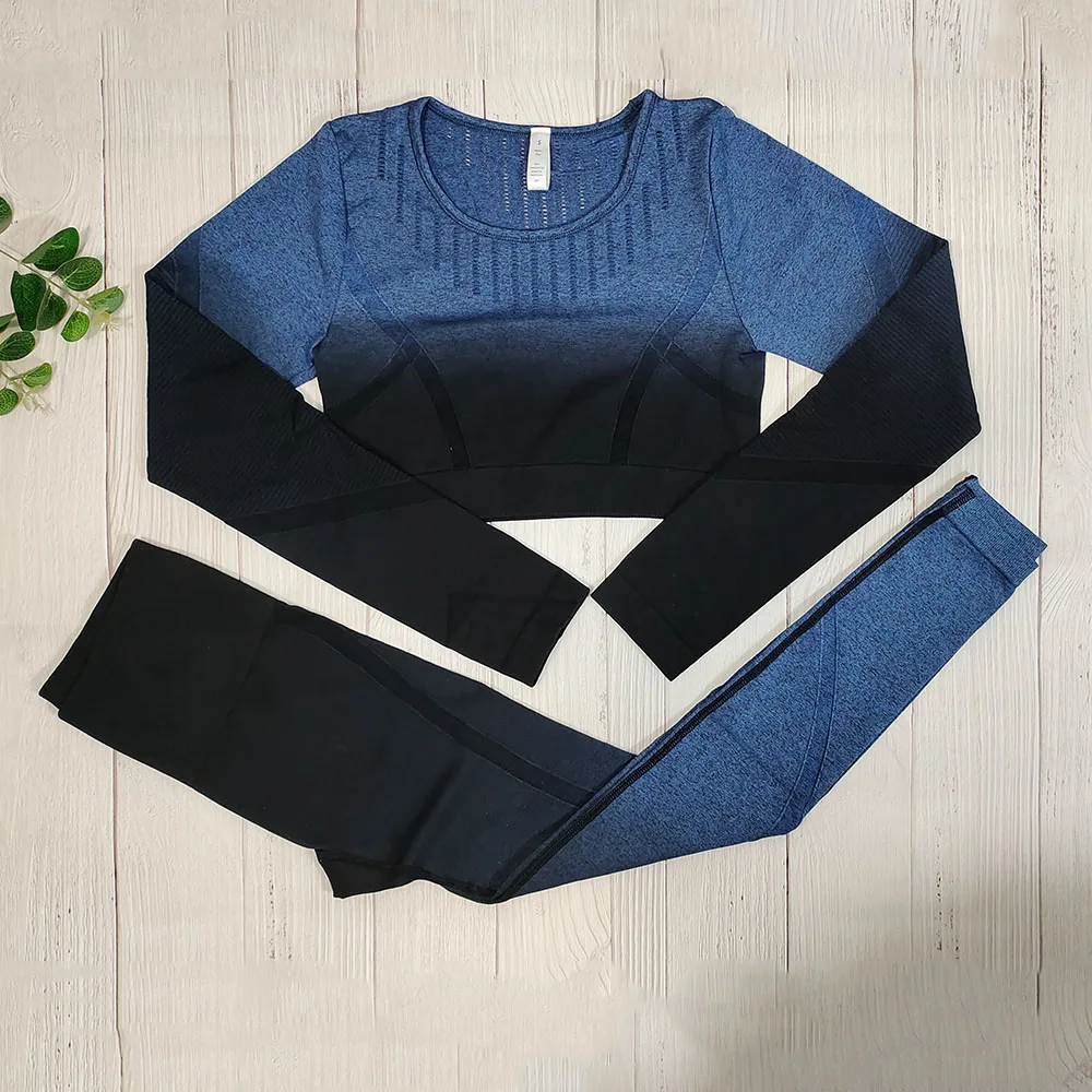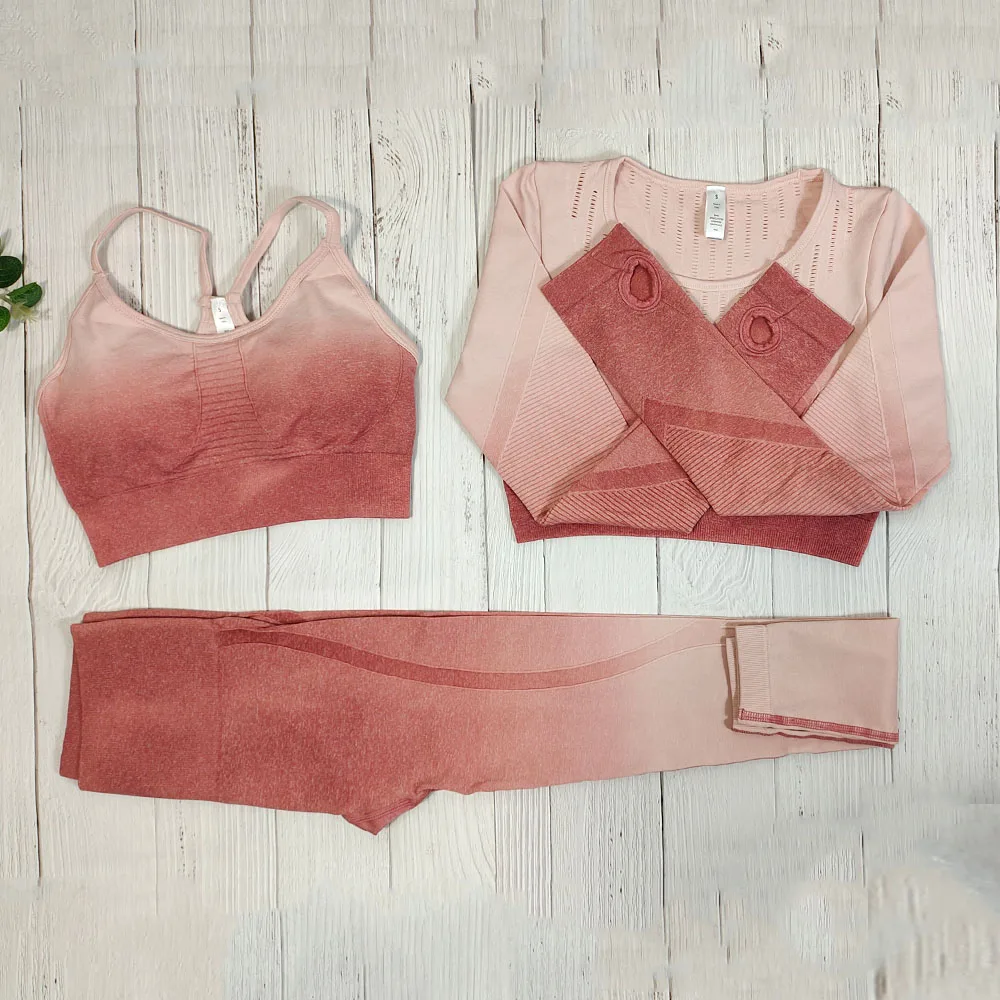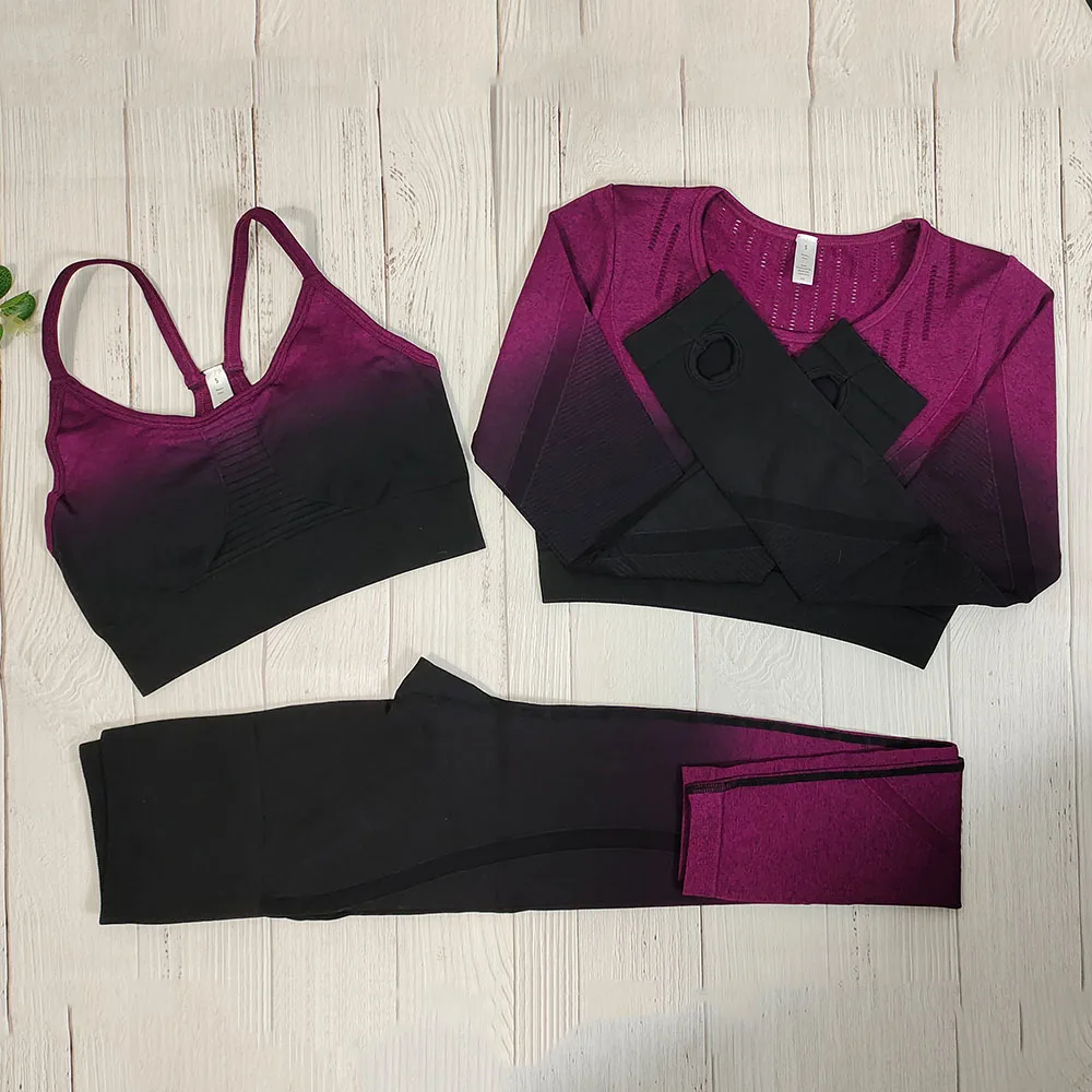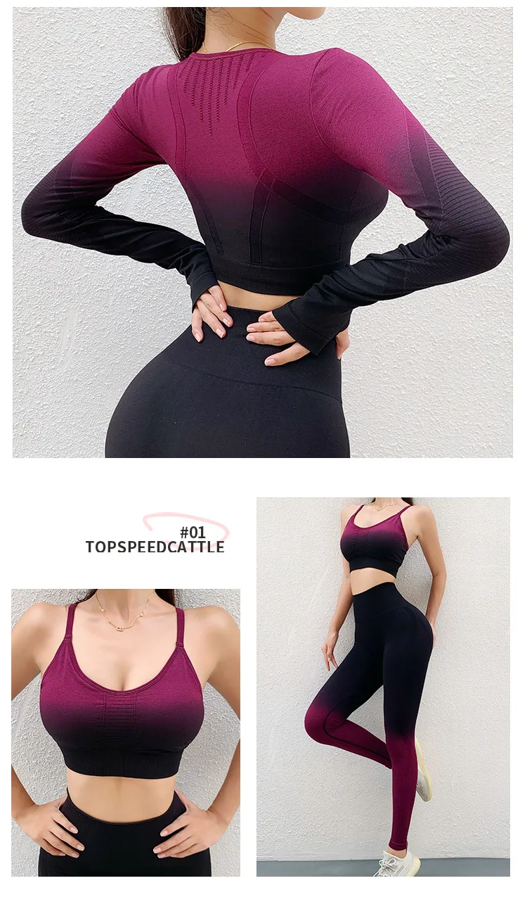 Женская спортивная одежда, бесшовный комплект для йоги, укороченный топ с длинным рукавом, спортивный бюстгальтер, леггинсы, одежда для тренажерного зала, спортивные костюмы для фитнеса