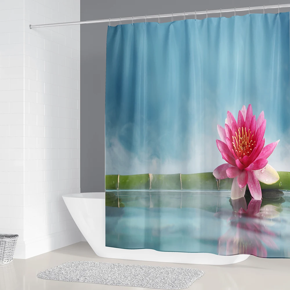 Водонепроницаемая шторка для душа, зеленая бамбуковая занавеска для проточной воды, Будда, с 12 крючками, для украшения ванной комнаты