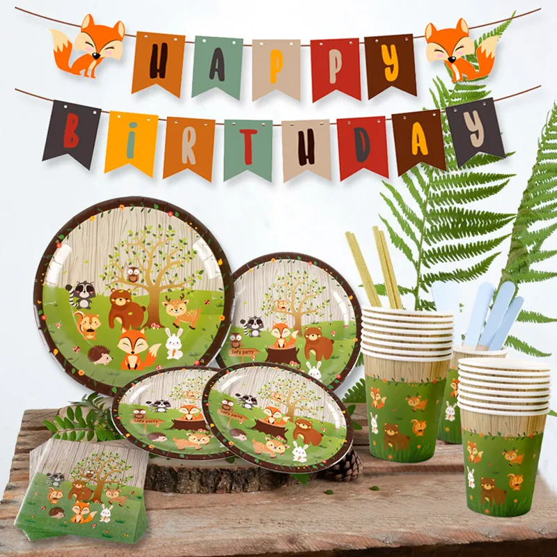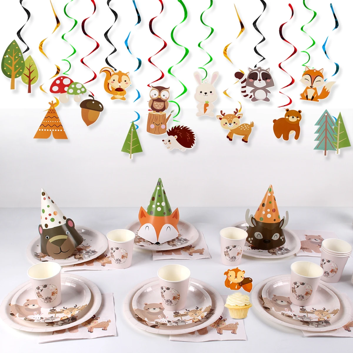 Лесных животных сафари лес DIY вечерние Декор лесной День рождения вечерние Baby Shower Декор детей 1st День рождения вечерние поставки
