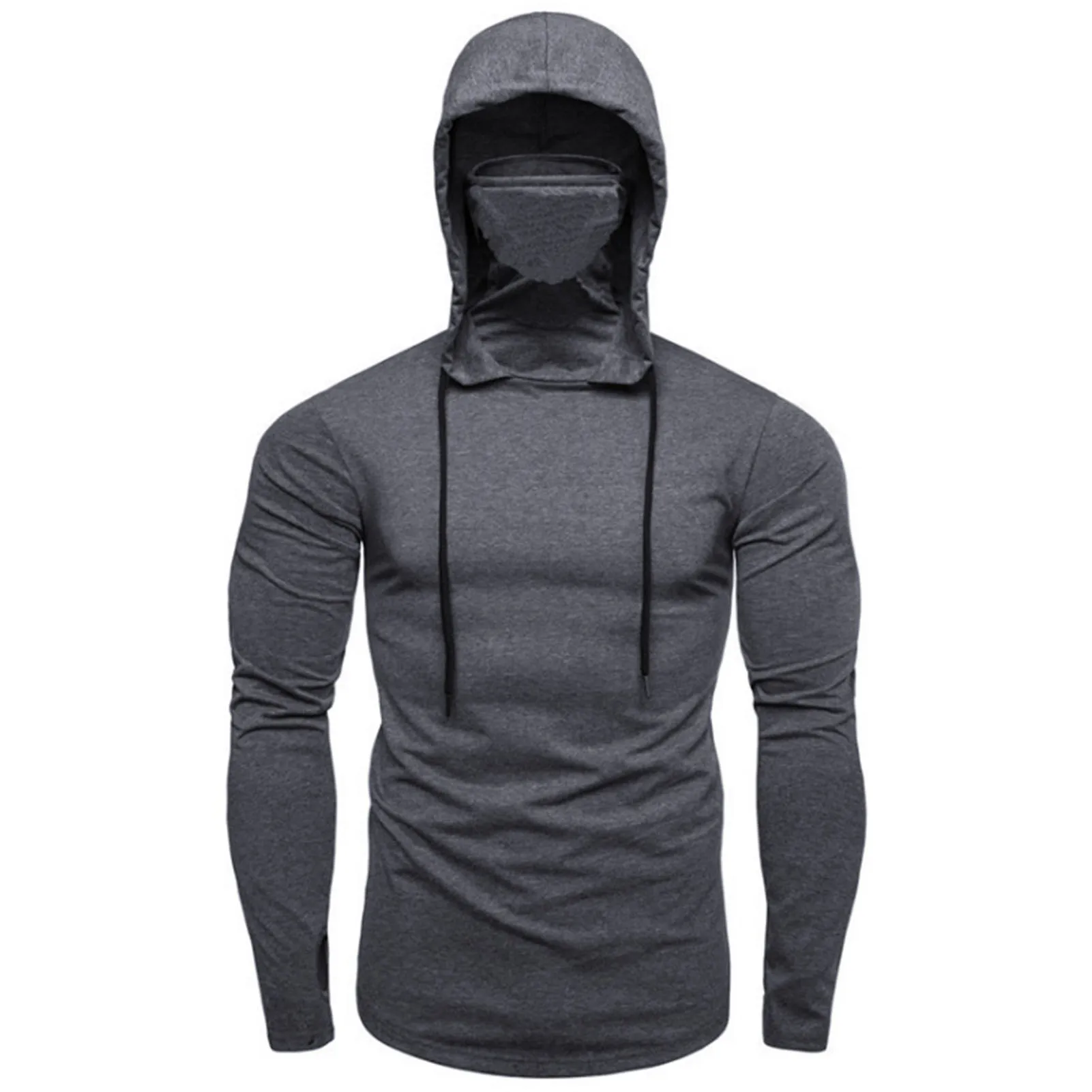 Мужская Осенняя Повседневная тонкая Толстовка для спортзала с длинным рукавом, однотонная толстовка с капюшоном, спортивный пуловер для фитнеса, спортзала, бега