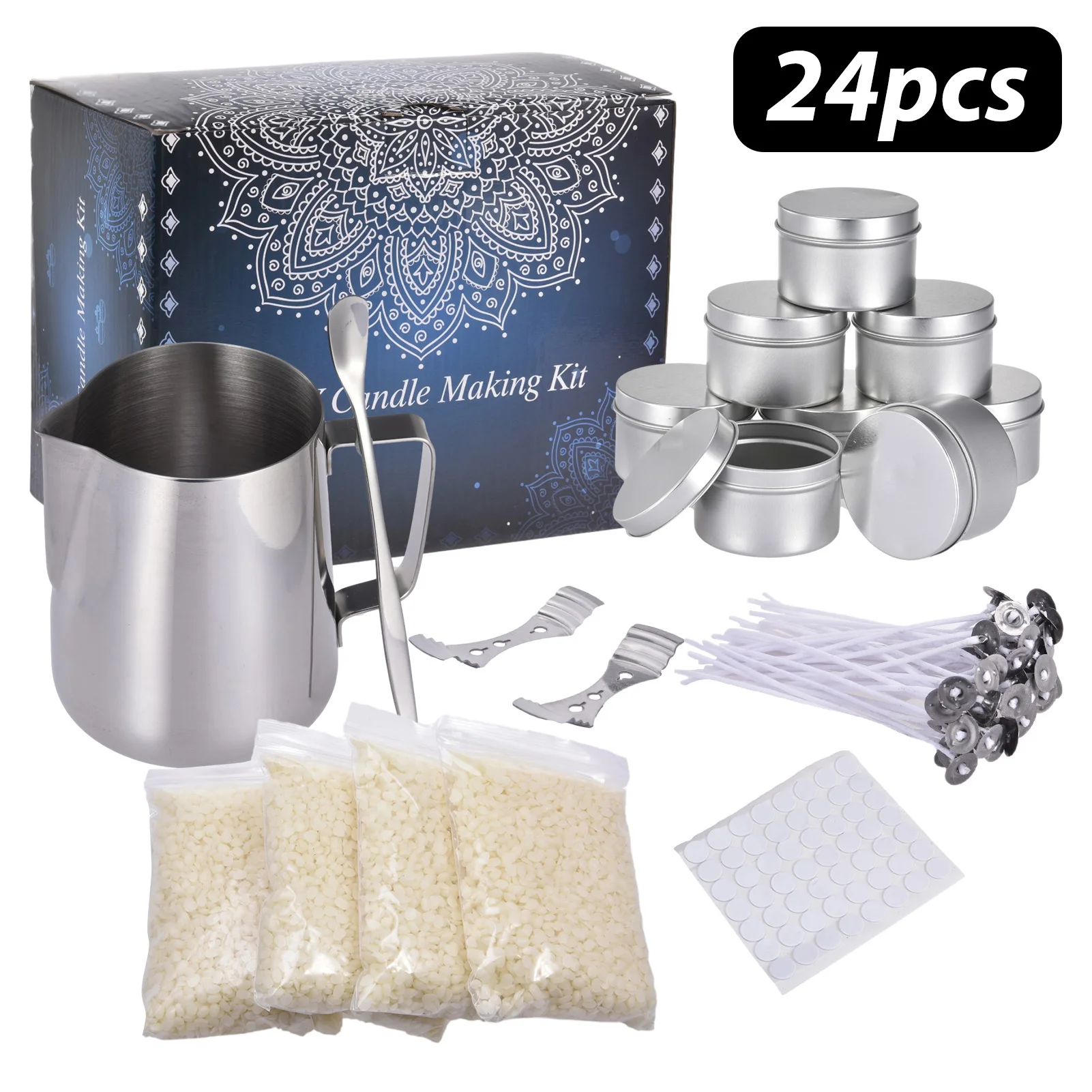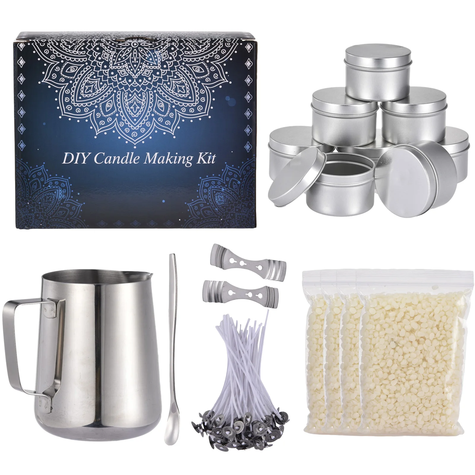 1. Высокое качество: все материалы, содержащиеся в наборе свечей, не токсичны и безопасны в использовании. Частицы свечей изготовлены из соевого воска, а стабилизатор фитиля, плавильный горшок и стержень для перемешивания изготовлены из нержавеющей стали. Высокая температура будет происходить во время эксплуатации, поэтому обратите внимание на безопасность.2. Полный стартовый набор: содержит все инструменты для изготовления свечей, 1 плавильный горшок емкостью 450 мл, 4 упаковки 0,26 фунтов соевого воска, 1 наклейка, 2 центральные принадлежности, 50 фитилей, 1 перемешивающая ложка, 8 банок для свечей и крышек.3. Легко сделать: эта свеча очень подходит для начинающих. Для расплавления соевого воска требуется всего 1 минуту и 40 минут, чтобы получить идеальную свечу. Это отличный набор инструментов для изготовления свечей DIY, подходящий для умных или любопытных людей, которым нравится учиться новым вещам.4. ble для умных или любопытных людей, которые любят учиться новым вещам. Простота в использовании: Набор для изготовления восковых соевых бобов использует только простые инструменты, чтобы завершить процесс изготовления свечей, на первый взгляд, и сделать ваши собственные свечи по мере необходимости. Независимо от того, являетесь ли вы новичком или профессионалом, этот набор для изготовления свечей DIY может легко сделать ваши собственные домашние свечи. Сделай Сам с детьми, чтобы сделать ваши выходные счастливыми и значимыми.5. Изысканные Подарки: отличные и изысканные подарки для семьи и друзей на день рождения, Рождество, День Святого Валентина, женский день, День матери или любые другие особые случаи.Описание: