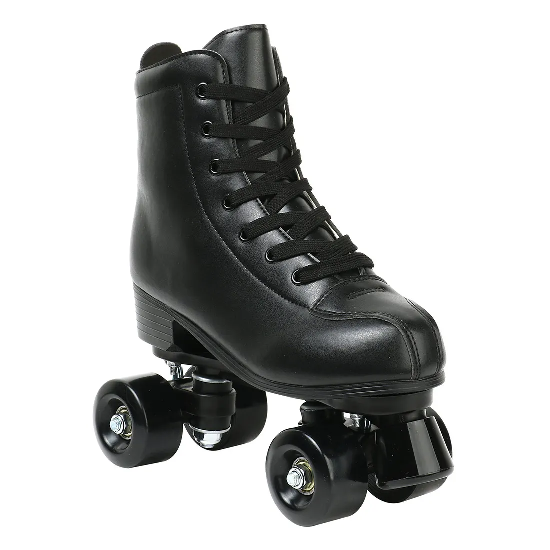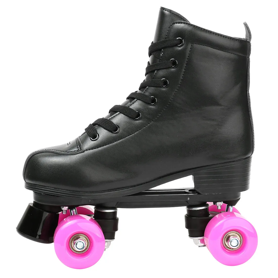 Женские черные роликовые коньки из искусственной кожи, обувь для катания на коньках, сдвижные роликовые коньки с встроенными колесами, кроссовки для тренировок, европейский размер, 4 колеса, флэш-колесо