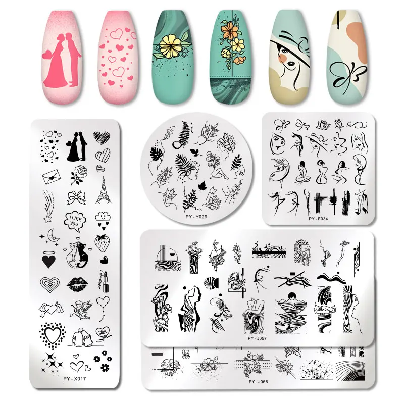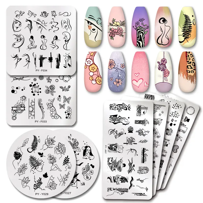 Пластины для стемпинга ногтей PICT YOU, с рисунком розы, мраморные листья