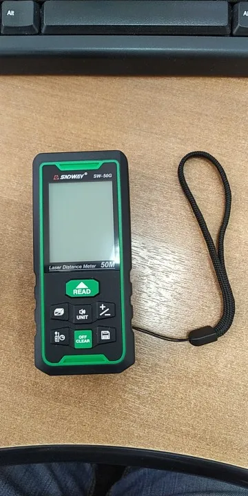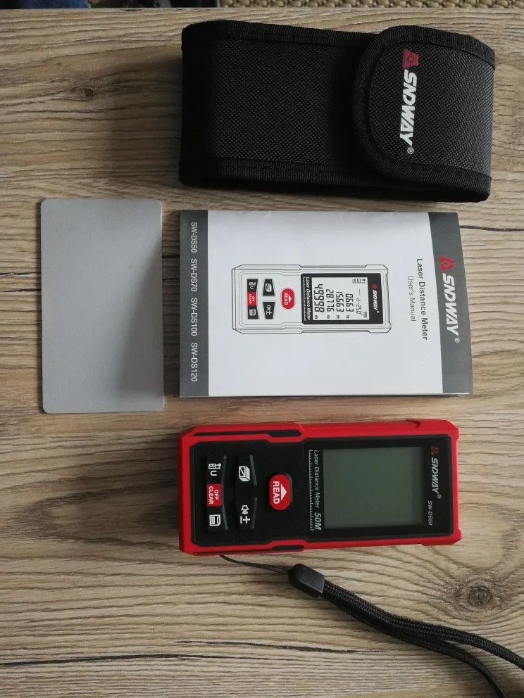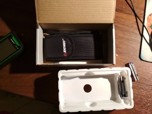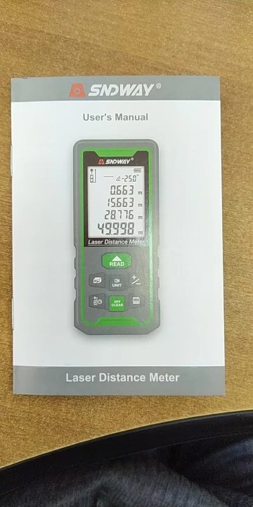 Соответствует описанию, быстрая отправка и доставка. Отличная рулетка с хорошим функционалом, очень удобная. Для работы на улице советую брать с лазером зелёного спектра, ее лучше видно. Свои параметры отрабатывает достаточно хорошо. Работает от трёх мизинчиковых батареек - специально выбирал вариант с батарейками, а не с аккумулятором, но это на усмотрение каждого. В комплекте чехол. Продавца рекомендую. Посылка пришла целая, упакована хорошо. Мануал на английском языке.