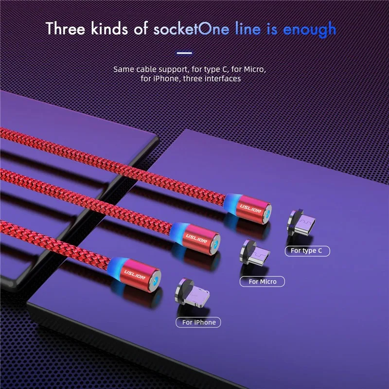 Магнитный кабель USLION 3 м Micro USB для Samsung Android мобильный телефон Type-c, зарядка для iPhone XS XR 8, магнитное зарядное устройство, провод, шнур