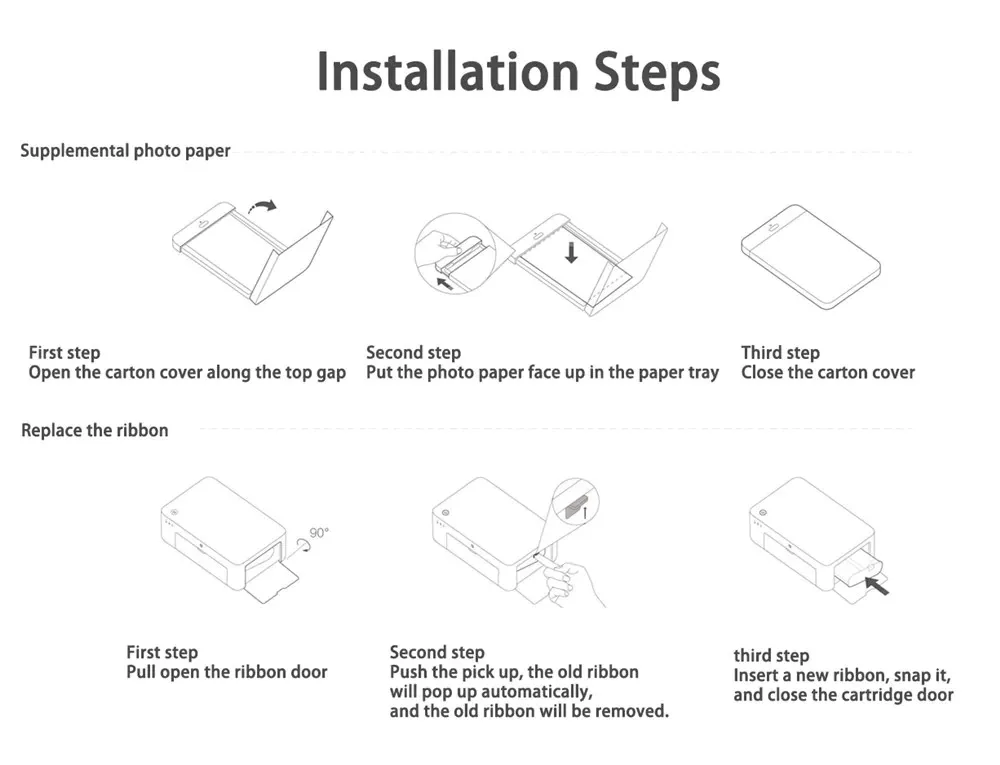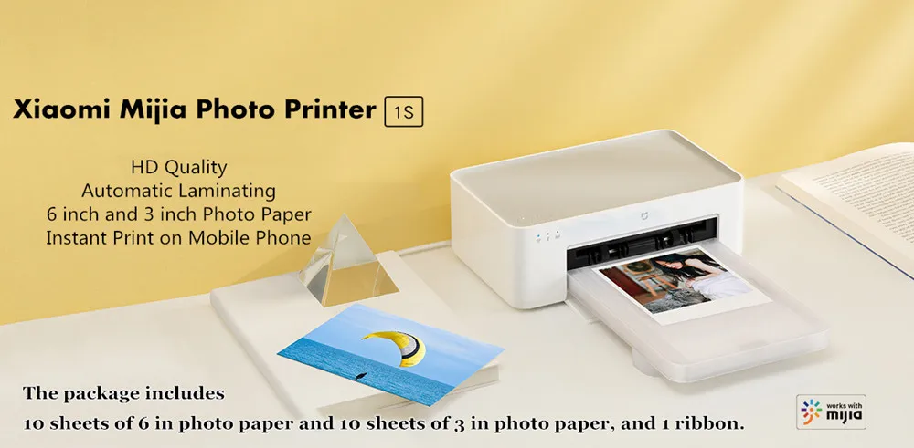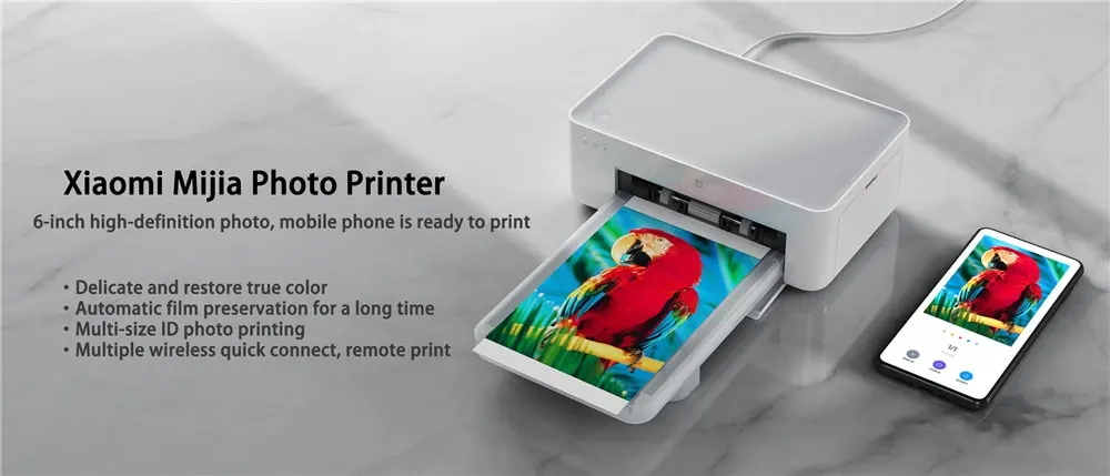 Особенности:1. Два типа размера бумаги, конвертация фотографической бумаги Zuishinin2. Включая 20 бумаг, 1 Цветную Бумагу3. Автоматическое покрытие пленки выцветания, фотография кюйя шин4. WeChat, Yoneya APP Tono штамп, ручной стол или компьютер все доступны5. Автопортрет и ОбрезкаПроизводительность печати:Технология печати: сублимационная печатьРазрешение печати: 300x300 dpiКоличество уровней печати: 256 уровней на цветСкорость печати: около 1 минуты/страницаЕмкость лотка: 20 листов фотобумагиПоддерживаемые форматы файлов: JPEG, PNGСпециальные расходные материалы:Модель: фотопринтер Xiaomi Mijia 1S3-дюймовый клейкая фотобумагаФотобумага: 10 листов 3-дюймовый клейкая Фотобумага x 4Лента: 1 (можно напечатать 40 фотографий)Параметры мощности:Входные параметры: 24V-1.6AУмное подключение:Система поддержки: Android 4,1 или IOS 9,0 и вышеУмное приложение: доступ к приложению MijiaПоддерживаемые устройства: смартфоны, смарт-планшеты, персональные компьютерыБеспроводной подключение: Wi-Fi IEEE 802,11 b/g/n 2,4 ГГцПрочее:Вес нетто: около 1,4 кг (в том числе хозяина, 3-дюймовая пленка лоток для бумаги, бумажная коробка, ткань, CN адаптер питания, 6-дюймовая Фотобумага x 10, 3-дюймовая пленка Фотобумага x 10 лента)Размер изделия: 194x124,6x83,6 ммРабочая температура: 10 °C ~ 35 °CПосылка включает в себя:1 * хост принтера1 * бумажная коробка1*3 дюймов держатель для бумаги1 * Адаптер питания1 * лента10*6 дюймов фотобумага10*3 дюйма клейкая фотобумага1 * Руководство по эксплуатации