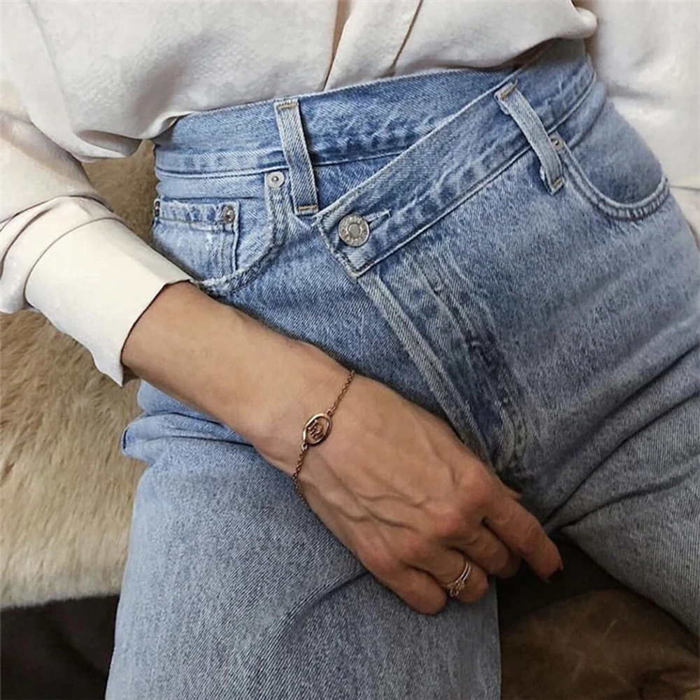 Женские Темно-синие джинсы брюки для девочек в винтажном стиле, в стиле 90-х Асимметричные свободные детские штаны джинсы с высокой талией модные повседневные женские летние джинсовые штаны