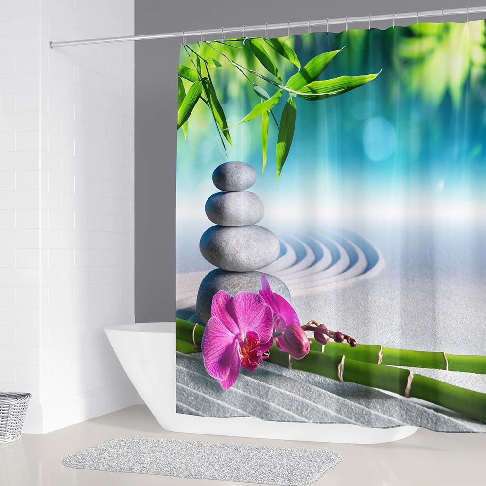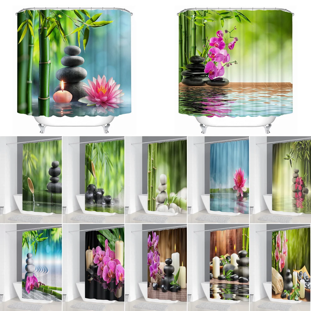 3D бамбуковая ткань Lotu, занавески для душа из полиэстера, водонепроницаемые весенние декоративные занавески из дзен-камня для ванной, большие размеры