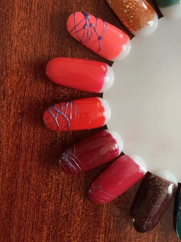 Нормальная паутинка за эти деньги(цена-23 ₽). Доставка до Саратова 2 месяца. Не яркая, ТЯНЕТСЯ ПЛОХО, часто рвётся и Очень быстро плывёт,но даже толстые нити хорошо просыхают. за такую цену пойдёт. На фото весь типс блестит, т.к перекрыт топером с хлопьями юкки