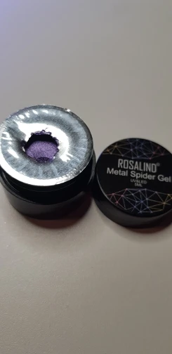 Цвет такой же красивый как на фото продавца. Баночка конечно большая, но наполнение видно по апельсиновой палочке, дно находится на половине высоты баночки. В лампе сохнет хорошо. Паутинка тягучая, замечательно переливается, цвет очень плотный даже на тонких линиях.