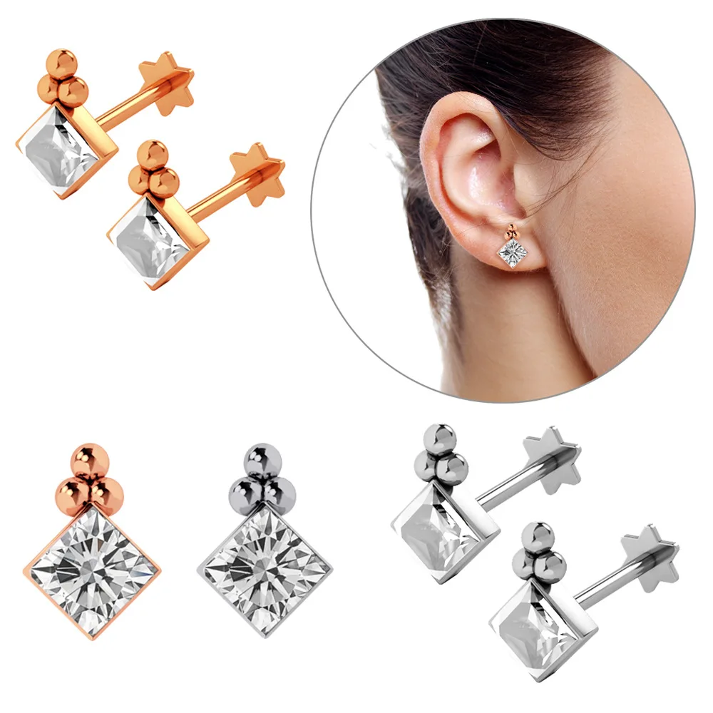 Серьга-геккон для пирсинга, из нержавеющей стали, квадратный криста...