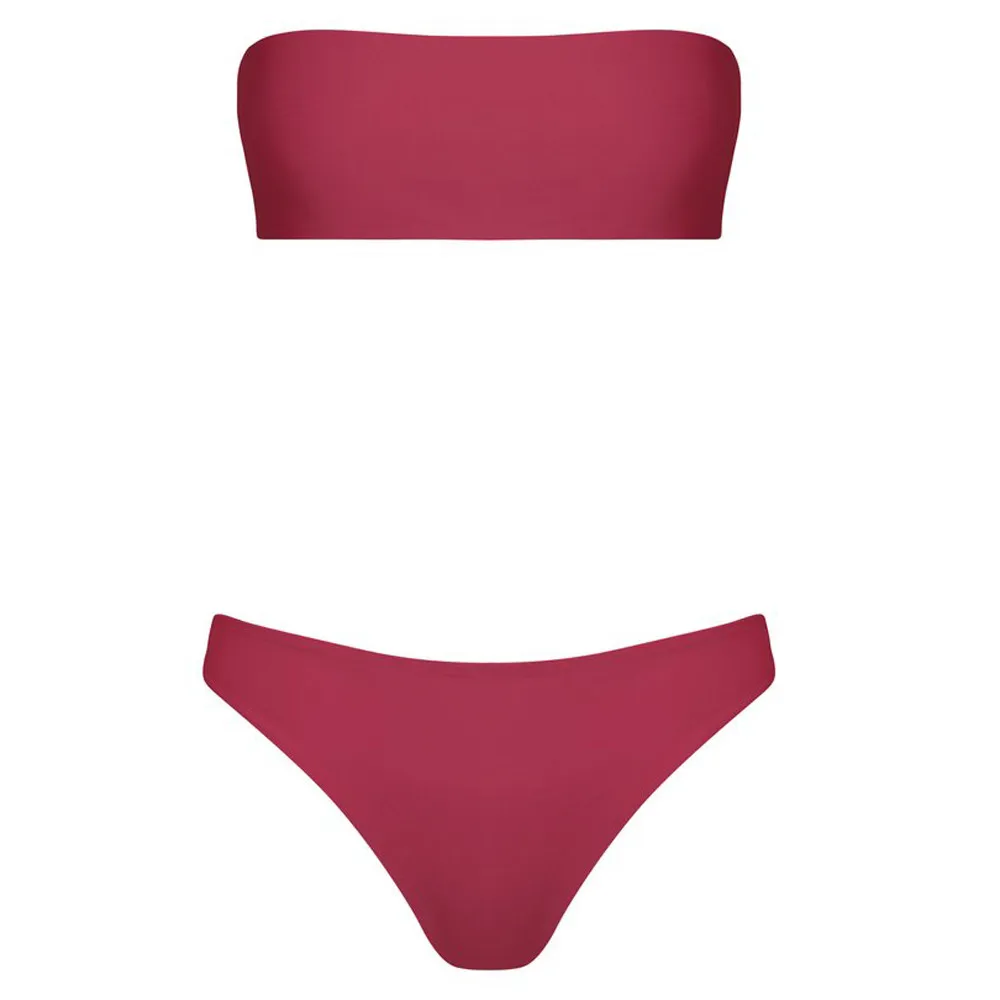 Сексуальный комплект бикини бандо, женский сплошной цвет, купальник пуш-ап, Бразильское бикини, розовый, черный, бикини, купальный костюм