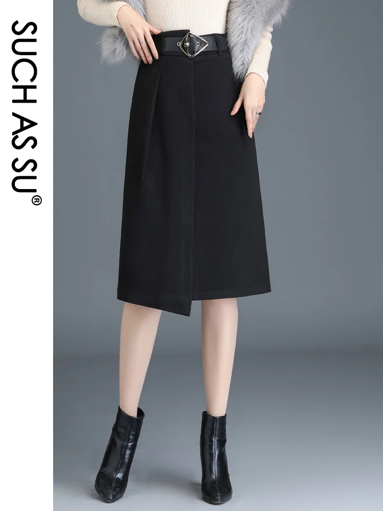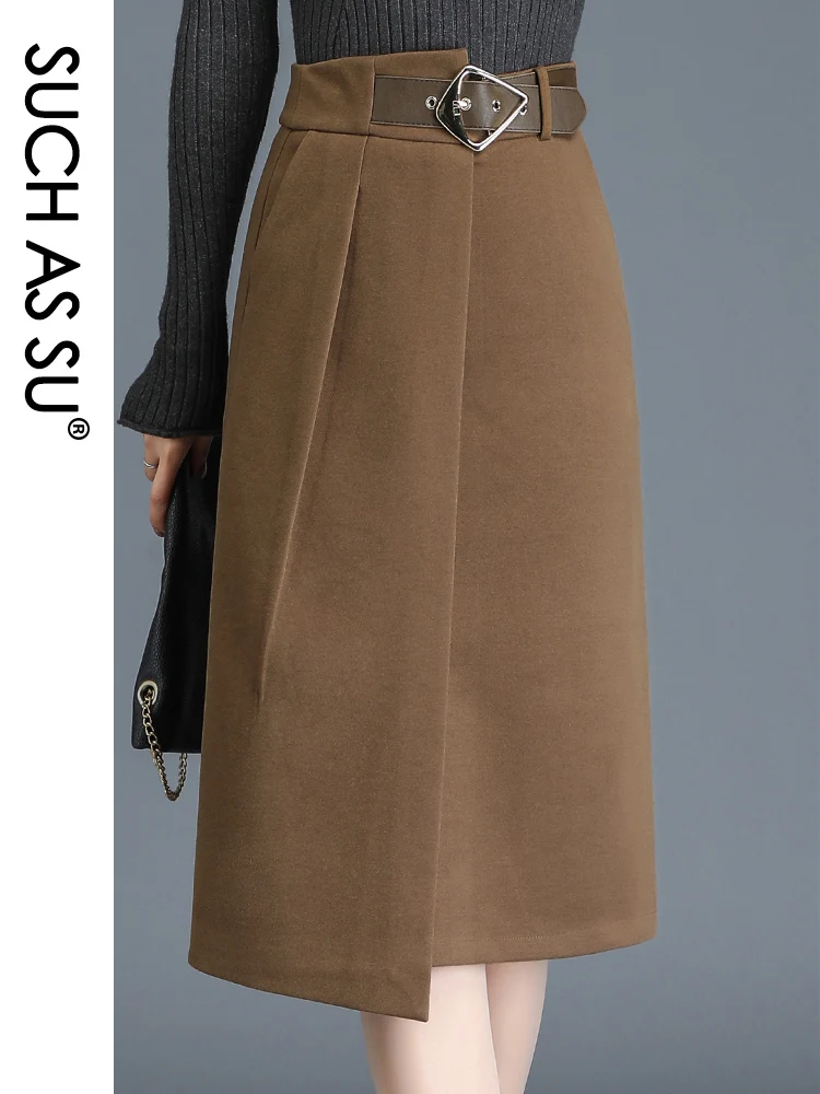 Новая Вязаная Асимметричная Женская юбка 2020 зима черная коричневая S-3XL размера плюс с высокой талией и поясом шерстяная Асимметричная юбка средней длины