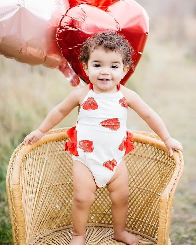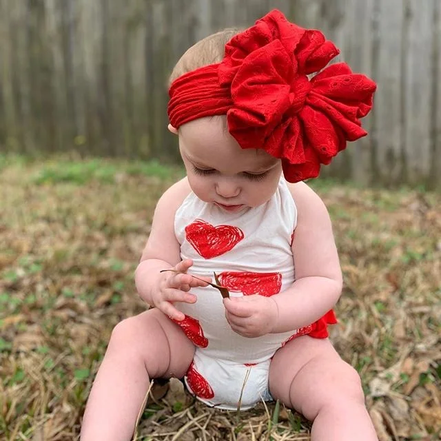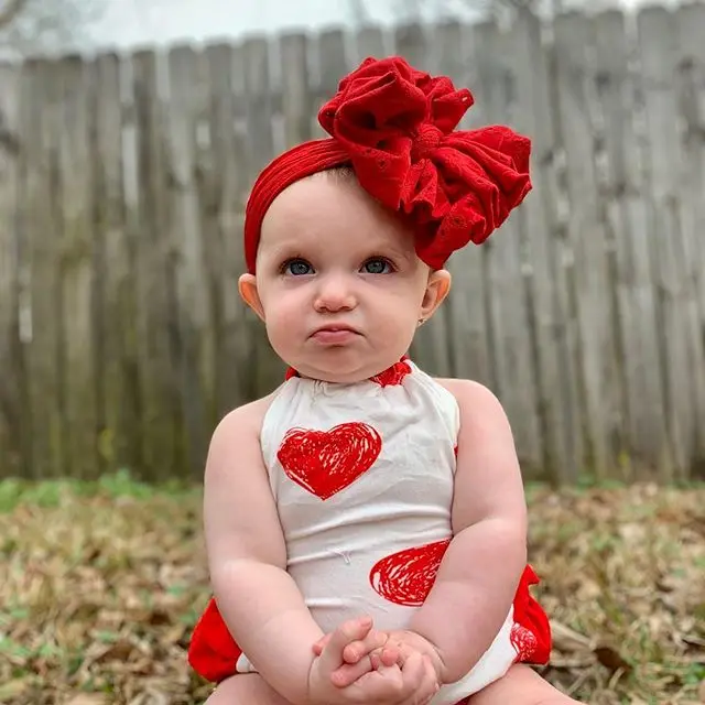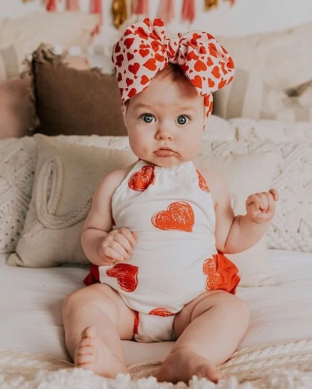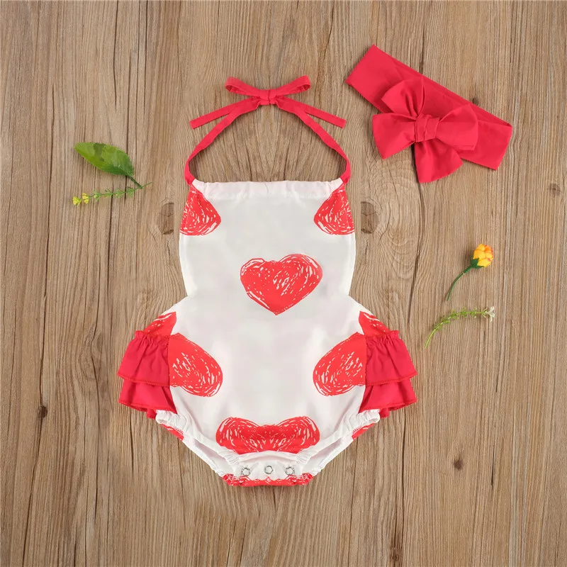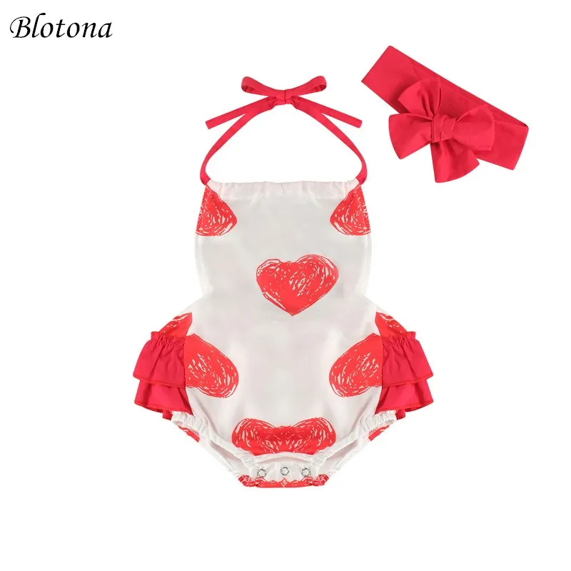 Blotonaкомбинезон для девочек на День святого Валентина с принтом сердца, комплект из 2 предметов Боди без рукавов и с открытой спиной с повязкой на голову, 0-24 месяца