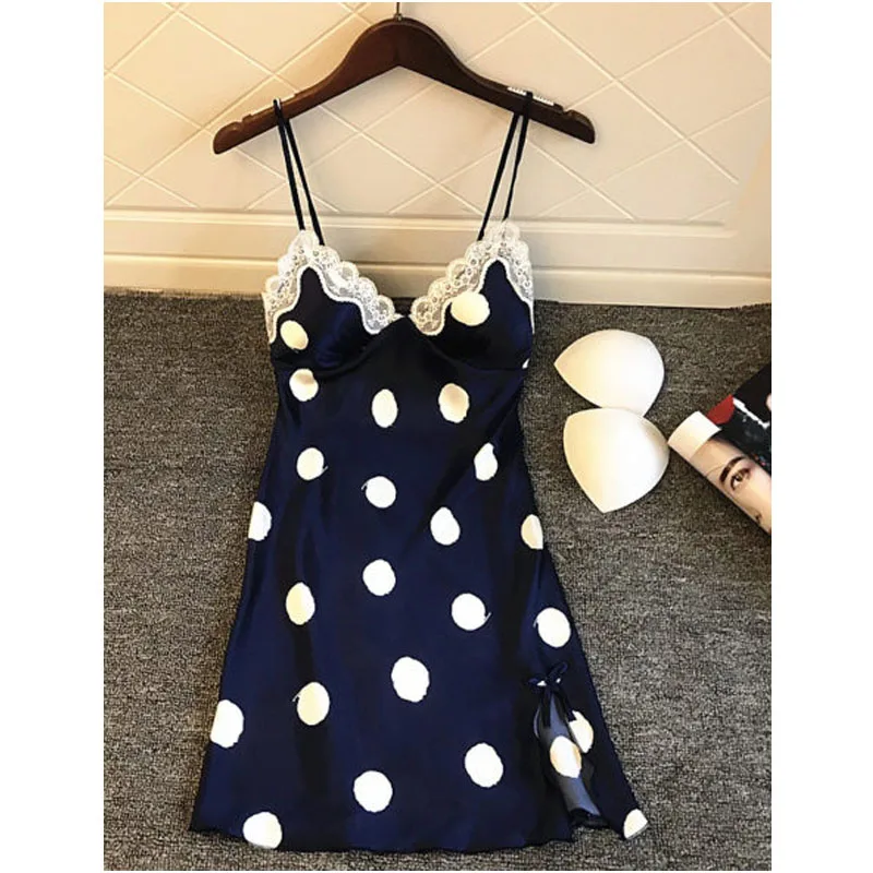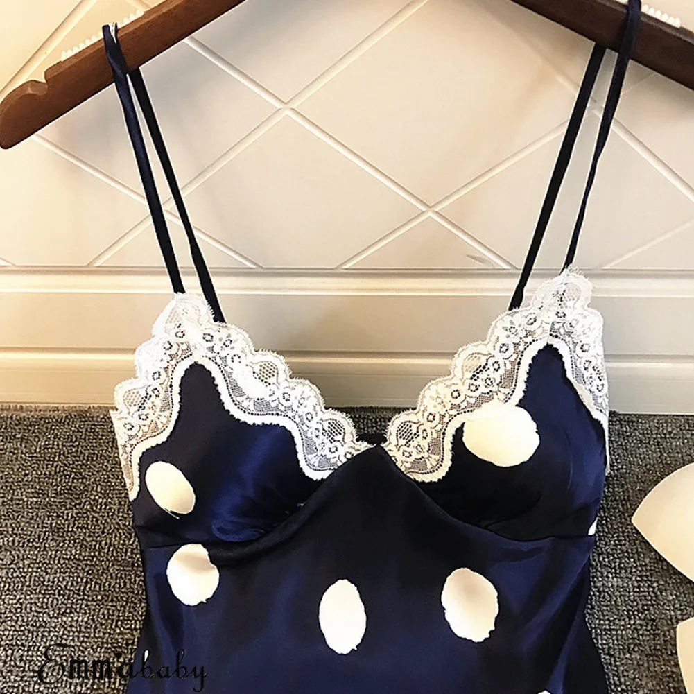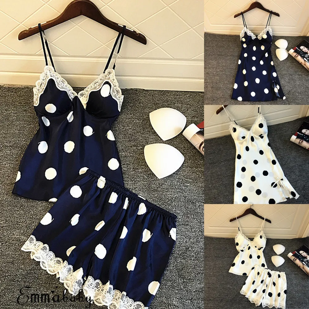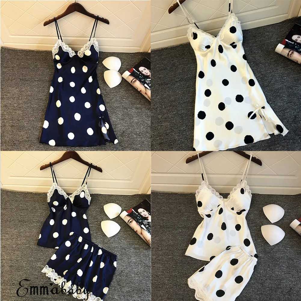 Сексуальный комплект нижнего белья в горошек из 2 предметов, женская одежда для сна, нижнее белье на бретельках, ночная рубашка, кружевной Атласный топ с волнистыми шортами, пижамные комплекты