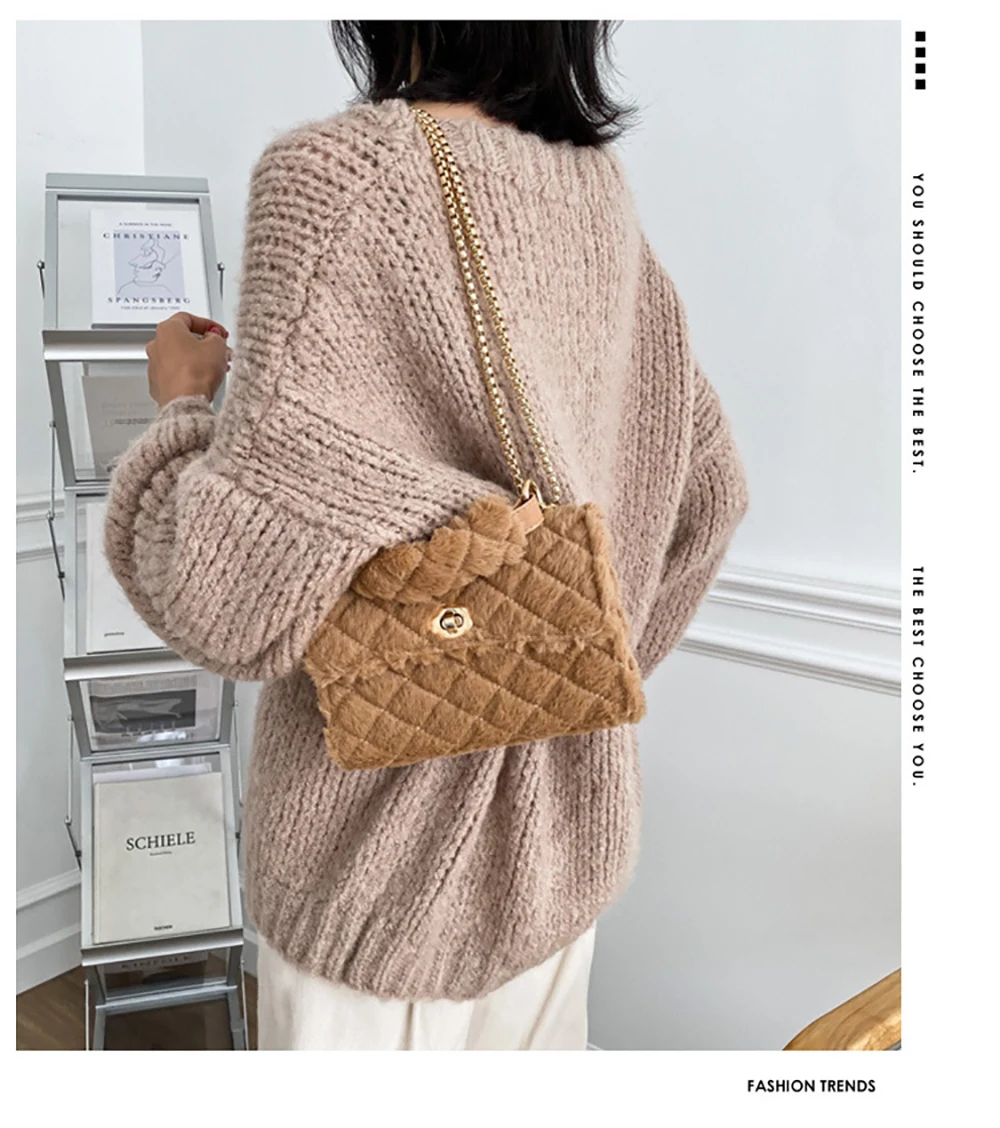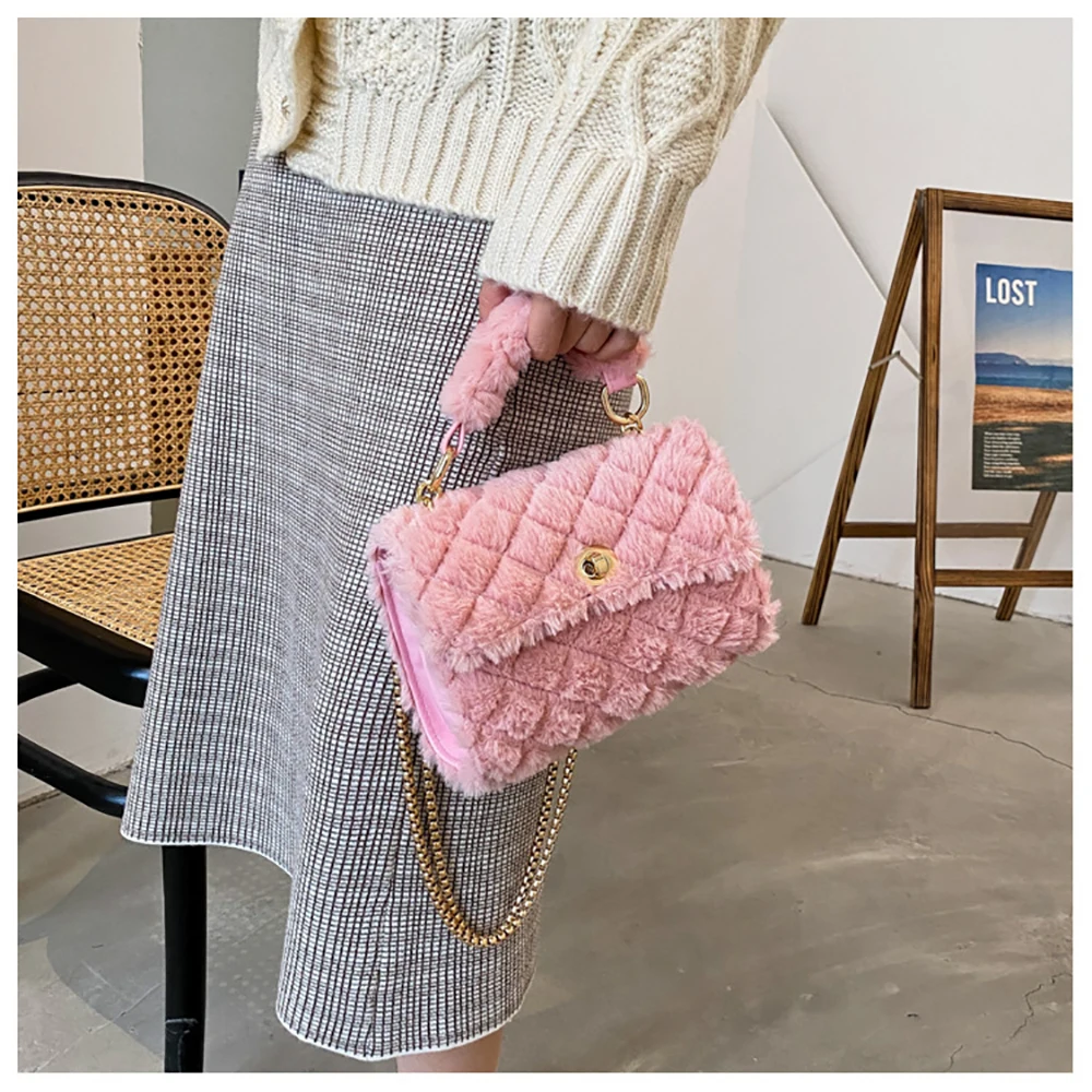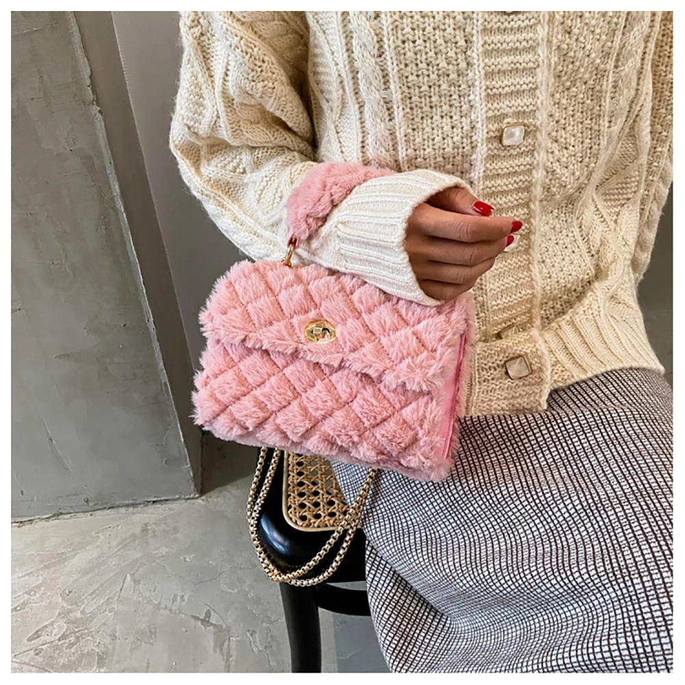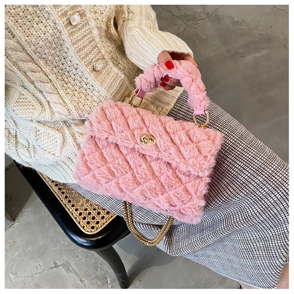 Зимняя теплая женская сумка на плечо из искусственного меха, новые роскошные женские сумки и кошельки с цепочками, сумки через плечо с верхней ручкой для женщин